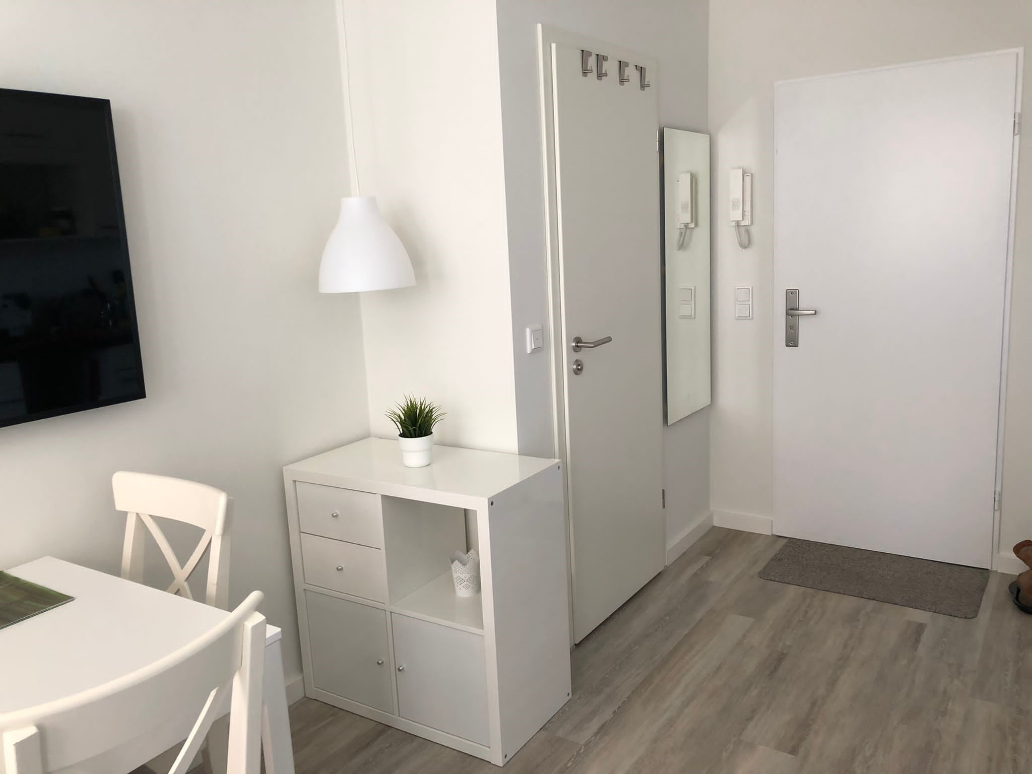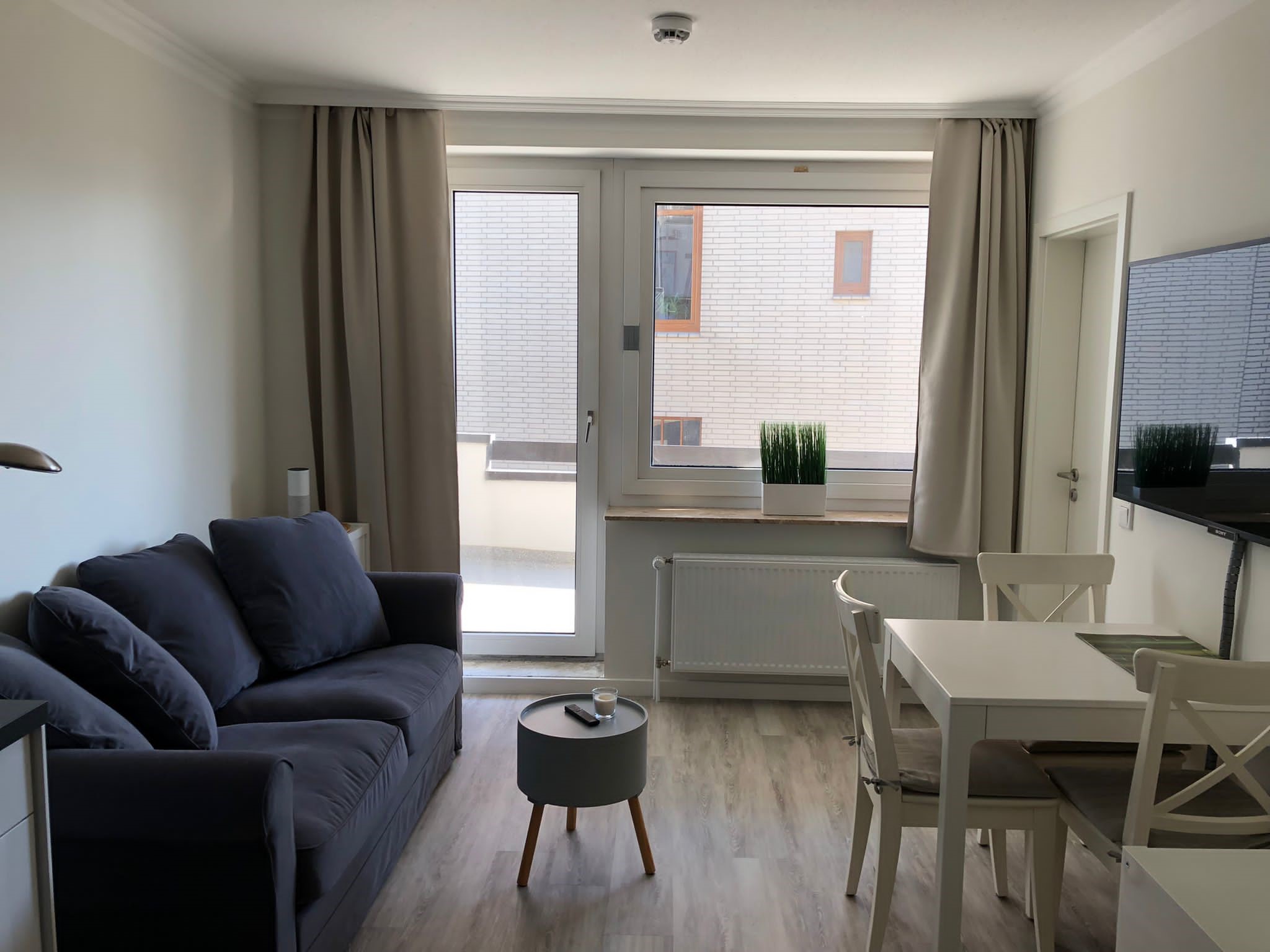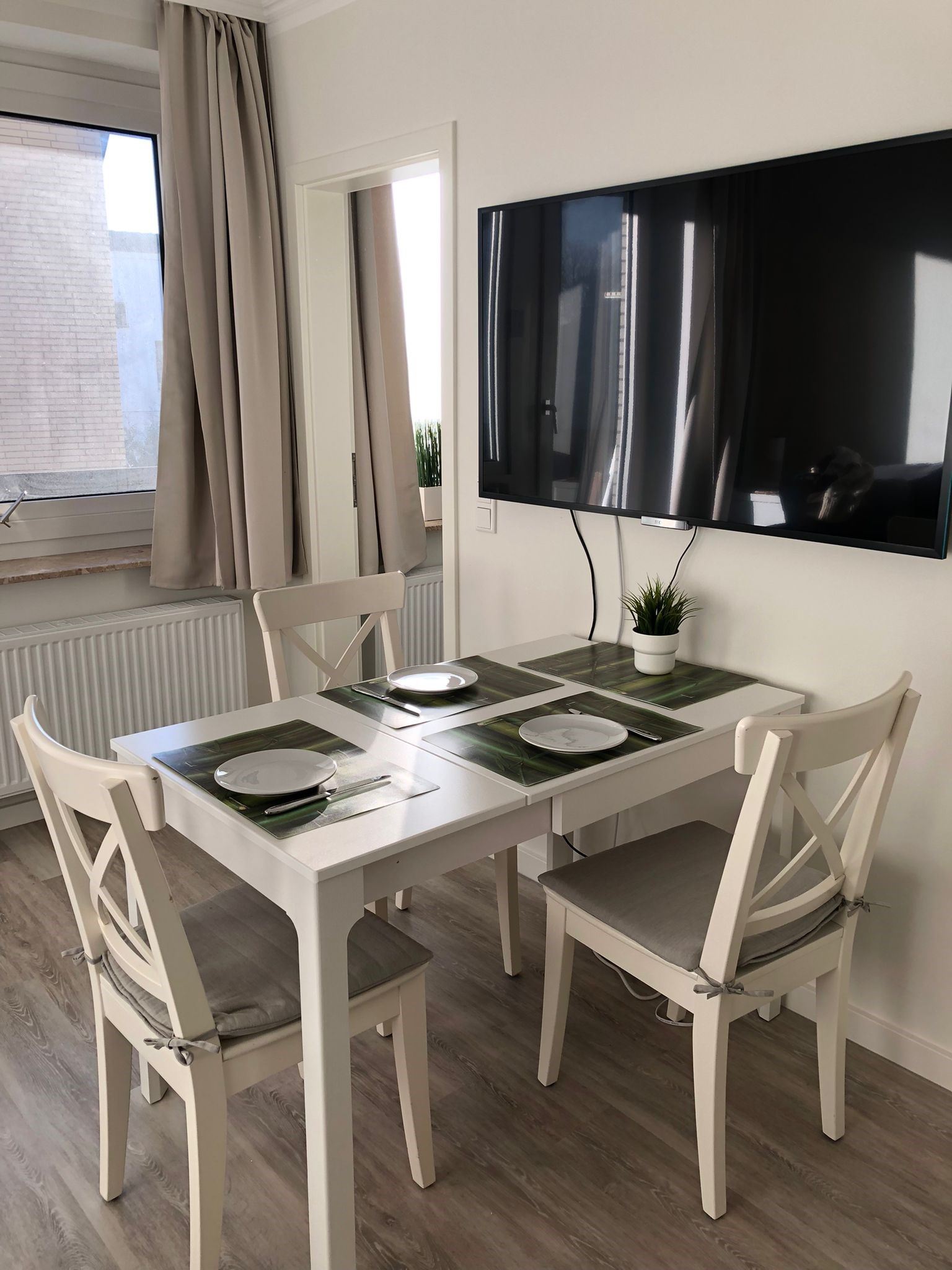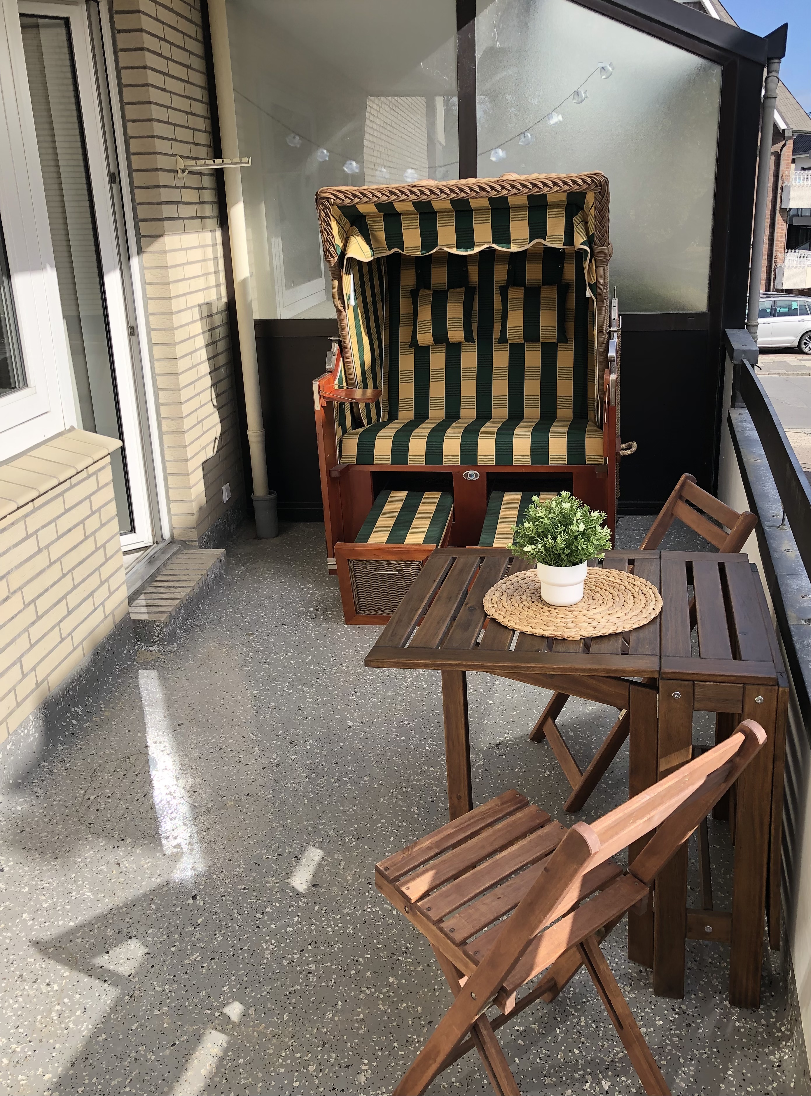 Ferienwohnung Elisabeth 5B – Stilvoller Nordseeurlaub in Bestlage von Duhnen Direkt gegenüber dem Ahoi-Erlebnisbad & nur wenige Meter bis zum Strand Die Ferienwohnung Elisabeth 5B bietet den idealen Ausgangspunkt für einen entspannten Nordseeurlaub in Cuxhaven-Duhnen. Die liebevoll eingerichtete Wohnung liegt im beliebten Haus Elisabeth, direkt gegenüber dem Ahoi-Erlebnisbad mit Thalasso-Zentrum und nur wenige Schritte vom feinen Sandstrand entfernt. Mit Platz für bis zu 3 Personen eignet sie sich hervorragend für Paare oder kleine Familien. Der helle Wohn- und Essbereich lädt zum Verweilen ein und bietet genügend Raum zum Entspannen. Das gemütliche Schlafzimmer sorgt mit seinem freundlichen Ambiente für erholsame Nächte. In der voll ausgestatteten Küche finden Sie alles, was Sie für die Selbstverpflegung benötigen – inklusive Geschirrspüler und Nespresso-Maschine für den perfekten Start in den Urlaubstag. Ein besonderes Highlight erwartet Sie auf dem Dach des Hauses: Von der gemeinschaftlich nutzbaren Dachterrasse genießen Sie einen traumhaften Blick über Duhnen bis zur Nordsee – ideal für Sonnenuntergänge oder entspannte Stunden mit Aussicht. Ein kleiner, privater Balkon gehört ebenfalls zur Wohnung und bietet einen ruhigen Ort im Freien. Für Unterhaltung ist ebenfalls gesorgt: Neben kostenfreiem WLAN stehen Ihnen Alexa, Spielesammlungen und sogar ein Legospieltisch für die kleinen Gäste zur Verfügung. Ein privater Parkplatz direkt am Haus ist inklusive. Wäschepakete sind bei Bedarf zubuchbar. Die Wohnung ist rauchfrei und Haustiere sind nicht erlaubt.
