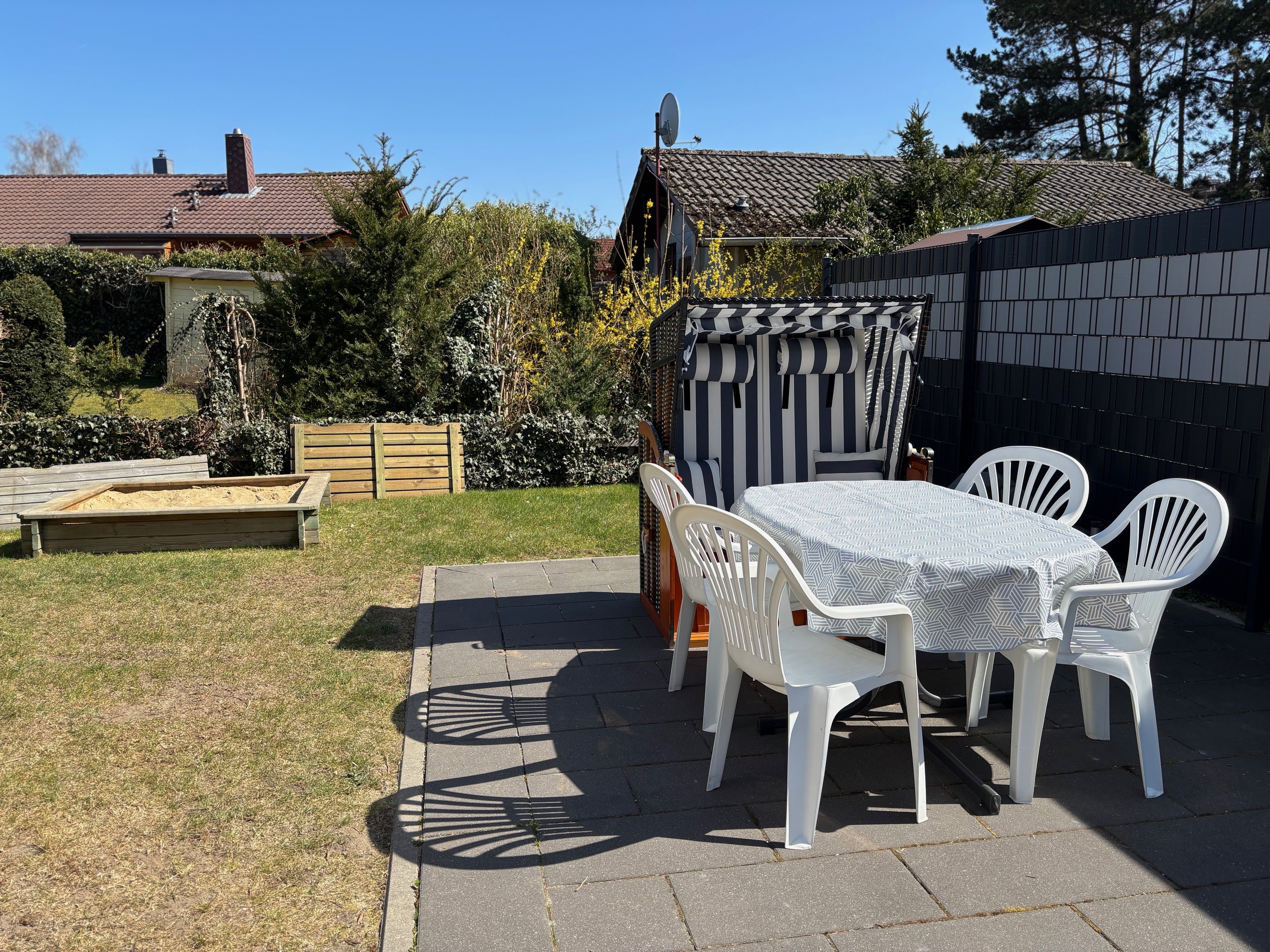 Das gemütliche Ferienhaus in Sahlenburg ist mit bis zu 6 Personen belegbar, ideal für den Familienurlaub. Zum Sahlenburger Strand sind es ca. 5 bis 10 Minuten. Das Haus hat 2 Schlafzimmer mit komfortablen Betten. Wlan ist im Haus selbstverständlich vorhanden. Die Küche ist unter anderem mit Backofen,Ceranfeld sowie Kühlschrank mit Gefrierfach ausgestattet. Das Objekt verfügt über eine Terrasse mit eingezäuntem Grundstück. Wäschepaket zubuchbar. Haustiere erlaubt.