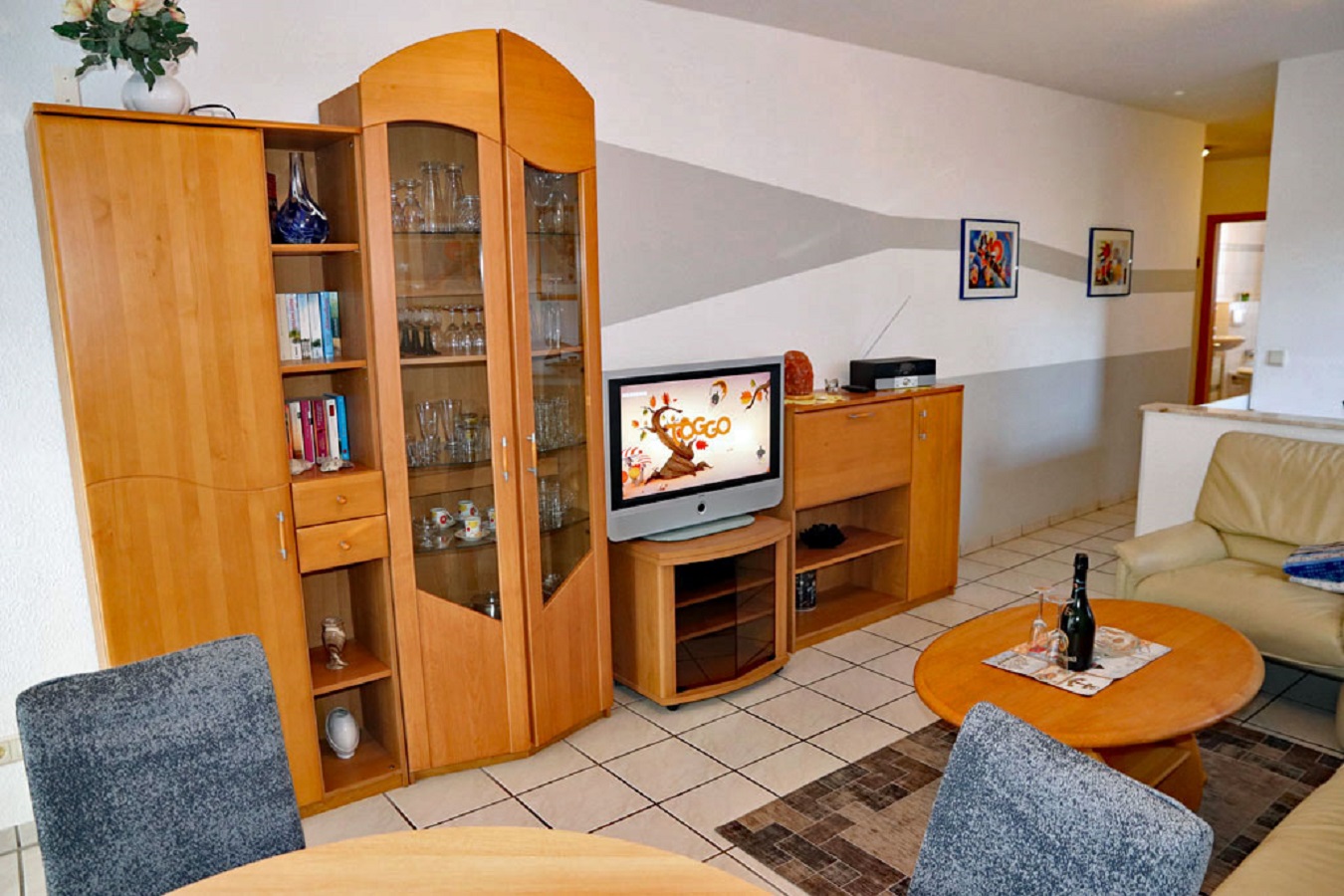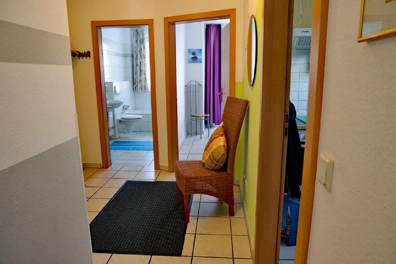 Diese schöne ca. 55 qm 3 Zimmer Wohnung verfügt über ein Wohnzimmer mit integrierter Küche, 1 Schlafzimmer mit Doppelbett und und einem Essbereich. Bad/WC, Terrasse, 1 TG Stellplatz, Sauna, Waschmaschine und Wäschetrockner gegen Gebühr im Haus. Wäschepaket zubuchbar. Hund erlaubt. Im Haus steht Ihnen zusätzlich eine Sauna (gegen Gebühr) zur Verfügung. Für Ihr Auto ist ein Tiefgaragenstellplatz reserviert (Einfahrtshöhe 1,90 m).