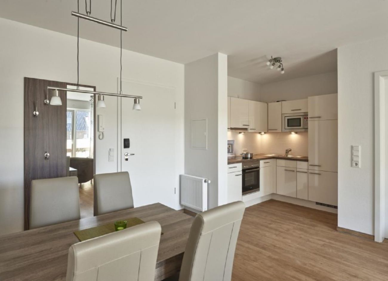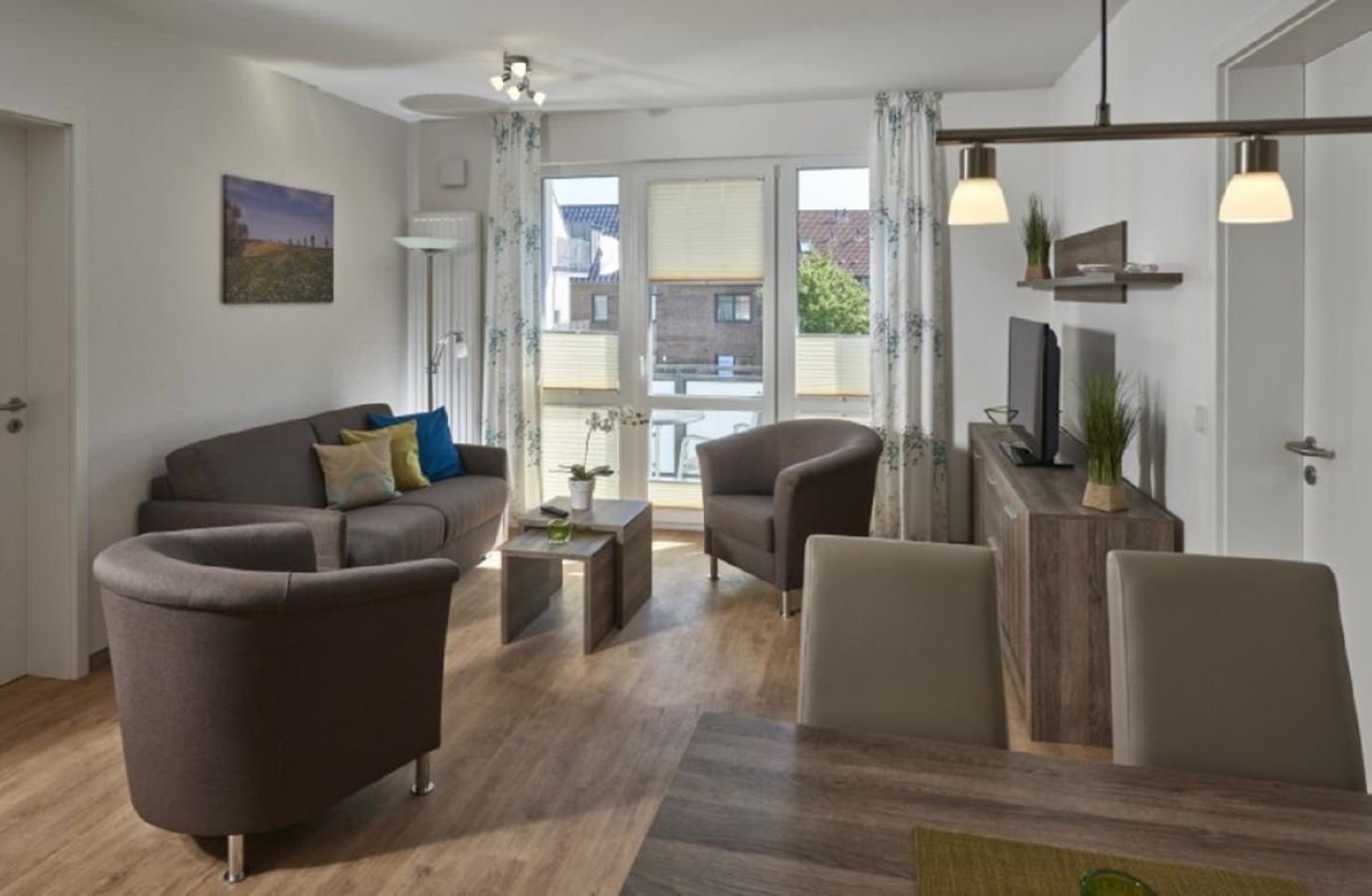 Ihr Nordseeurlaub in moderner Atmosphäre – Ferienwohnungen in der Anlage „Op de Geest“ in Duhnen Willkommen in der modernen Ferienwohnanlage „Op de Geest“ im Rugenbargsweg 37 – ideal gelegen im beliebten Kurteil Duhnen. In ruhiger Lage und dennoch nah am Zentrum sowie Strand gelegen, erwarten Sie insgesamt 16 hochwertig ausgestattete Ferienwohnungen für einen komfortablen und entspannten Aufenthalt an der Nordsee. Ob als Paar, Familie oder mit Freunden – hier finden Sie die passende Unterkunft für Ihre Bedürfnisse. Die Wohnungen verfügen über zwei separate Schlafzimmer, eine helle Wohnküche mit Essbereich, sowie ein modernes und vollständig ausgestattetes Badezimmer. Die Küchen lassen keine Wünsche offen: Geschirrspüler, Ceranfeld, Backofen, Kaffeemaschine, Toaster und vieles mehr stehen Ihnen zur Verfügung. Die 58 m² große Wohnung befindet sich in der 1. Etage. In der ersten Etage genießen Sie die Sonne auf Ihrem privaten Balkon. Die Einrichtung ist durchgehend modern, hochwertig und auf Wohlfühlen ausgelegt – mit stilvollen Möbeln, komfortablen Betten und einem durchdachten Raumkonzept. Jede Wohnung verfügt über kostenloses WLAN und einen hauseigenen Parkplatz direkt am Gebäude. Wäschepakete sind bequem zubuchbar. Haustiere sind im Hause "Op de Geest" leider nicht erlaubt. Besondere Extras der Anlage „Op de Geest“: Hauseigenes Anreisebüro im Untergeschoss – keine weiten Wege zur Schlüsselübergabe Waschküche mit Waschmaschine und Trockner (gegen Gebühr) Spieleraum mit Kickertischen für Groß und Klein Abschließbare Fahrradunterstellmöglichkeiten Ruhige, dennoch zentrale Lage – Strand, Promenade, Restaurants und Einkaufsmöglichkeiten sind fußläufig erreichbar Genießen Sie einen sorgenfreien und komfortablen Urlaub an der Nordseeküste – mit allem, was dazu gehört. „Op de Geest“ ist Ihre moderne Ferienadresse in Cuxhaven-Duhnen.