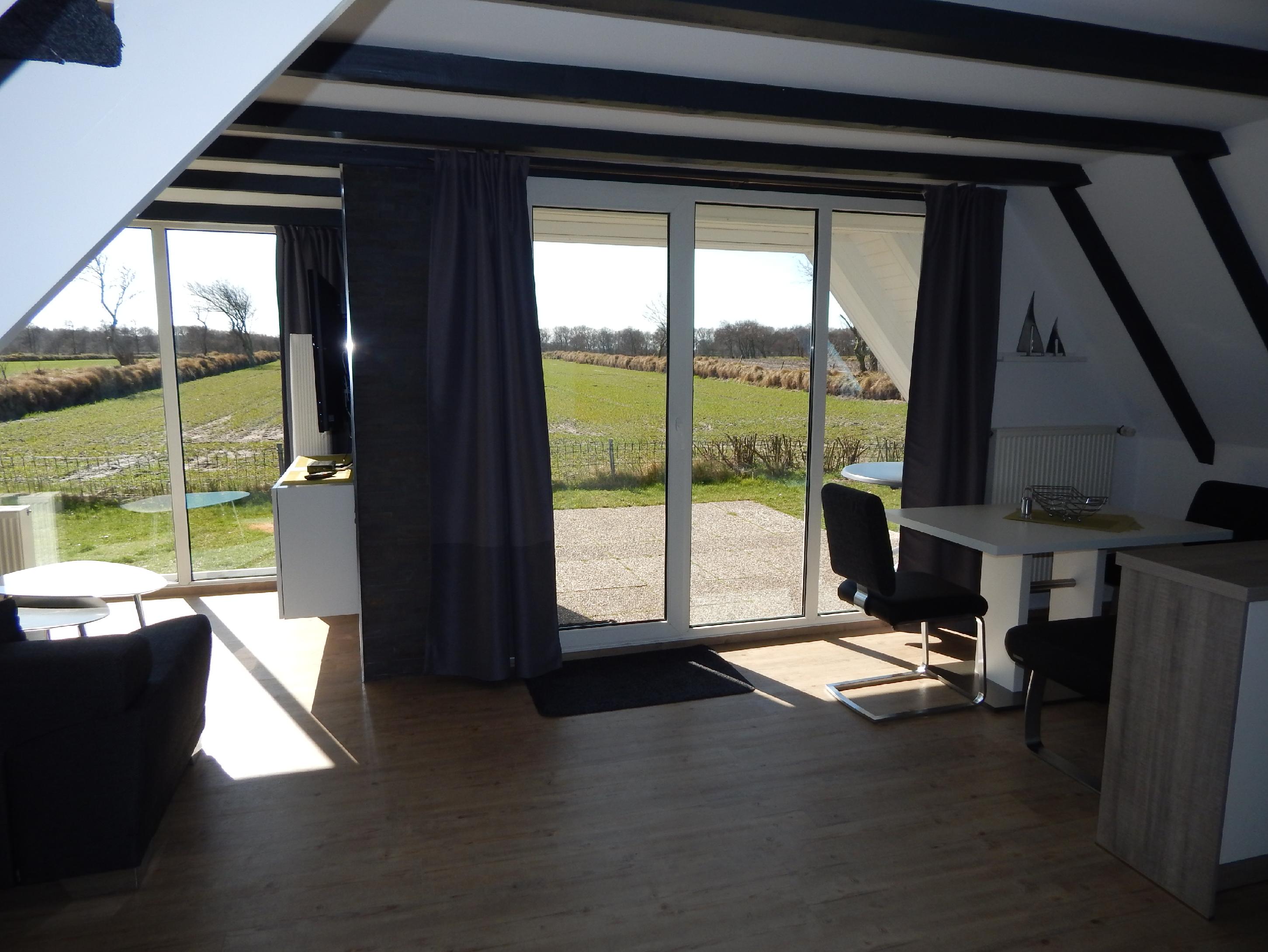 Ferienhaus Ringwall 76a – Ihr gemütliches Nurdachhaus mit traumhaftem Naturblick in Cuxhaven-Duhnen Dieses wunderschöne Nurdach-Ferienhaus am Ringwall 76a bietet auf ca. 62 m² Wohnfläche Platz für bis zu 5 Personen – ideal für Familien oder kleine Gruppen, die Ruhe und Natur genießen möchten. Im Erdgeschoss erwartet Sie ein offener Wohn-Essbereich mit integrierter Küche, der einen herrlichen Blick ins Grüne eröffnet. Von hier gelangen Sie direkt auf die großzügige Terrasse, die mit ihrem idyllischen Ausblick über die Felder und die Duhner Heide zum gemütlichen Frühstück oder entspannten Abend einlädt – perfekt, um Ihre erlebnisreichen Urlaubstage in aller Ruhe ausklingen zu lassen. Außerdem befinden sich im Erdgeschoss ein Duschbad sowie ein Schlafzimmer mit einem Einzelbett (90 x 200 cm). Im Obergeschoss finden Sie ein Kinderzimmer mit zwei Einzelbetten (je 90 x 200 cm) sowie das Elternschlafzimmer mit einem komfortablen Doppelbett (180 x 200 cm) und einem Fernseher. Beheizt wird das Haus über eine effiziente Gasheizung, sodass Sie sich auch an kühleren Tagen rundum wohlfühlen können. Das Ferienhaus liegt ruhig in einer Ferienhaussiedlung auf einem idyllischen Eckgrundstück. Hier können Sie dem Alltag entfliehen, entspannen und die Seele baumeln lassen. Der traumhafte Blick über Felder und Heide lädt zu Spaziergängen und Naturerlebnissen ein – auch für Kinder ein idealer Ort zum Spielen und Entdecken. Ein Wäschepaket mit Bettwäsche und Handtüchern kann bequem dazugebucht werden. Bitte beachten Sie, dass keine Haustiere erlaubt sind.