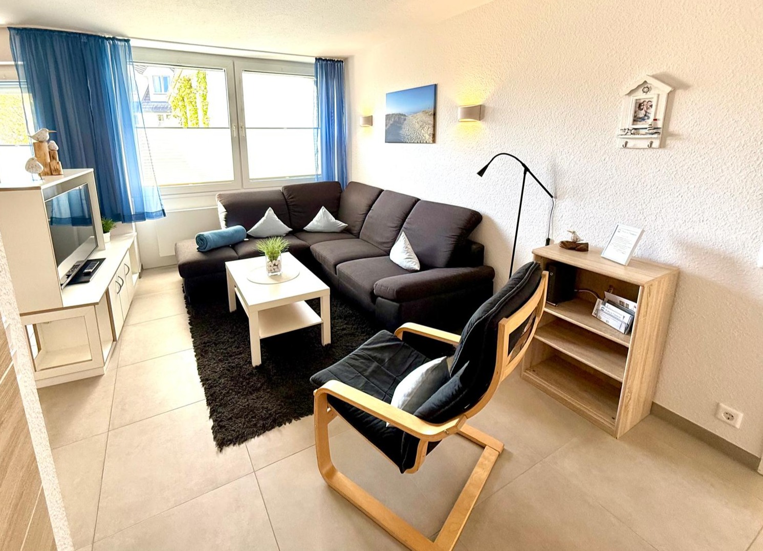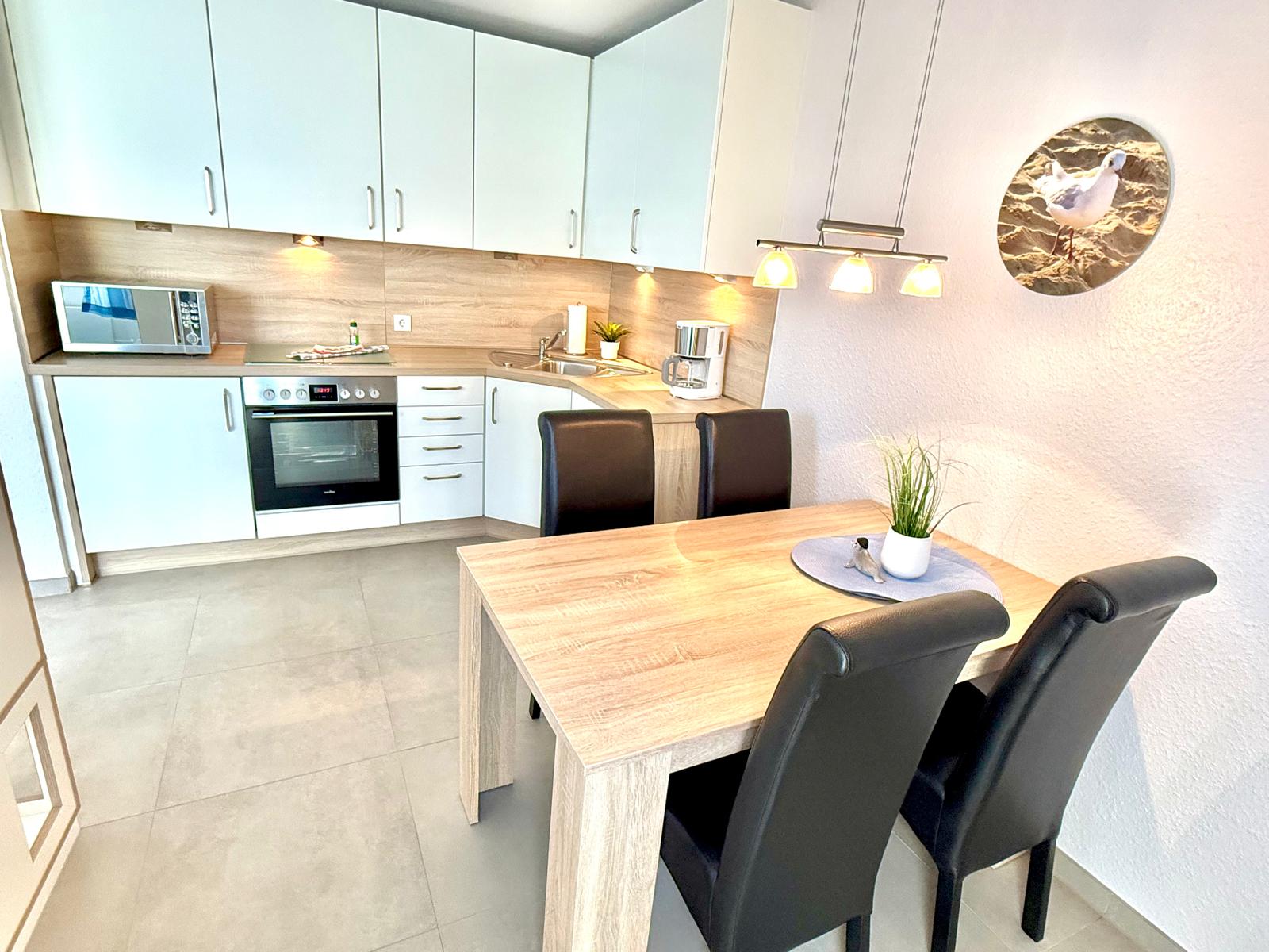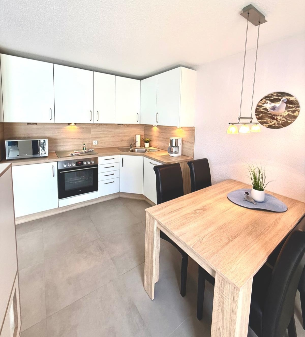Das kleine und gemütliche Appartementhaus liegt direkt im Ortskern von Duhnen und verfügt über 14 Wohnungen. Der kilometerlange feine Sandstrand sind nur ca. 150 m entfernt. Das Meerwasser- Erlebnisbad "Thalasso ahoi!" mit Wellenbad, Riesenrutsche und einer erholsamen Sauna Landschaft sowie umfangreiche Behandlungsangeboten befindet sich in ca 200 m. Verschiedene Restaurants, Cafés und gemütliche Bars laden zum Verweilen ein. Ein Bäcker auf der gegenüberliegenden Straßenseite bietet jeden morgen frische Brötchen für ein leckeres Frühstück, sowie sehr leckere Kuchen und Torten für einen Snack zwischendurch. Für die sportlichen Aktivitäten befindet sich ein Fahrradverleih in ca 300 m.Eine Minigolf Anlage befindet sich auch im Zentrum von Duhnen. Damit unsere kleine Gäste nicht zu kurz kommen, verfügt die unmittelbare Umgebung auch über interessante Spielplätze. Im Duhner Zentrum und Umgebung bieten sich viele Einkaufsmöglichkeiten, wie Souvenirshops, Kleidung und Lebensmittel. Aufteilung der Wohnung Unsere neu renovierte (2024) geschmackvoll, komplett eingerichtete Ferienwohnung, für bis zu 4 Personen befindet sich im ersten Stock und verfügt einen kleinen Balkon.Die ca. 60 qm sind aufgeteilt in ein Wohn-/Esszimmer mit integrierter Küchenzeile, Backofen und Geschirrspüler. Es gibt 2 Schlafzimmer mit Doppelbetten sowie in jedem Zimmer ein Kleiderschrank und ein Bad mit Dusche und WC.Im Kellergeschoss steht unseren Gästen ein Fahrradraum zur Verfügung.Hinter dem Haus befindet sich ein persönlicher PWK-Stellplatz Nr. 8. Für die leckeren Brötchen oder dem genussvollen Kuchen sorgt ein Bäcker auf der gegenüberliegenden Straßenseite. Für ein ausgiebiges Sonnenbad am Strand, steht unseren Feriengästen, während der Saison zusätzlich ein kostenloser Strandkorb während der Saison zur Verfügung. Dazu bieten wir kostenloses WLAN.