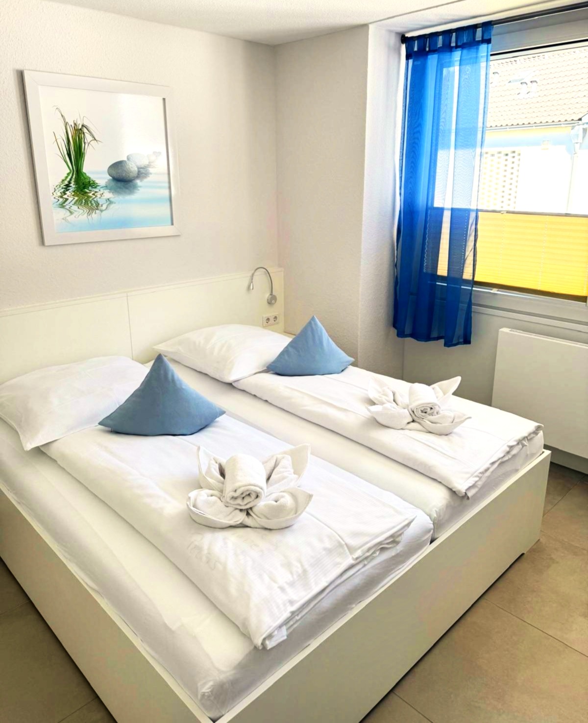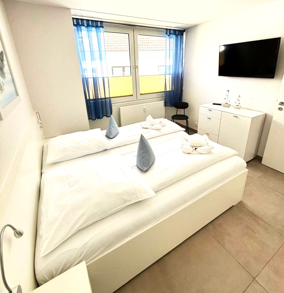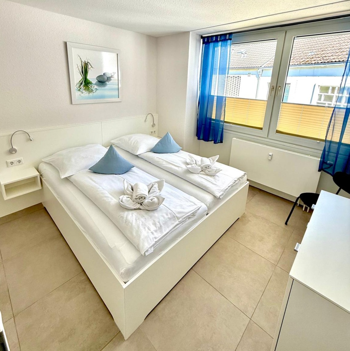Das kleine und gemütliche Appartementhaus liegt direkt im Ortskern von Duhnen und verfügt über 14 Wohnungen. Der kilometerlange feine Sandstrand sind nur ca. 150 m entfernt. Das Meerwasser- Erlebnisbad "Thalasso ahoi!" mit Wellenbad, Riesenrutsche und einer erholsamen Sauna Landschaft sowie umfangreiche Behandlungsangeboten befindet sich in ca 200 m. Verschiedene Restaurants, Cafés und gemütliche Bars laden zum Verweilen ein. Ein Bäcker auf der gegenüberliegenden Straßenseite bietet jeden morgen frische Brötchen für ein leckeres Frühstück, sowie sehr leckere Kuchen und Torten für einen Snack zwischendurch. Für die sportlichen Aktivitäten befindet sich ein Fahrradverleih in ca 300 m.Eine Minigolf Anlage befindet sich auch im Zentrum von Duhnen. Damit unsere kleine Gäste nicht zu kurz kommen, verfügt die unmittelbare Umgebung auch über interessante Spielplätze. Im Duhner Zentrum und Umgebung bieten sich viele Einkaufsmöglichkeiten, wie Souvenirshops, Kleidung und Lebensmittel. Aufteilung der Wohnung Unsere neu renovierte (2024) geschmackvoll, komplett eingerichtete Ferienwohnung, für bis zu 4 Personen befindet sich im ersten Stock und verfügt einen kleinen Balkon.Die ca. 60 qm sind aufgeteilt in ein Wohn-/Esszimmer mit integrierter Küchenzeile, Backofen und Geschirrspüler. Es gibt 2 Schlafzimmer mit Doppelbetten sowie in jedem Zimmer ein Kleiderschrank und ein Bad mit Dusche und WC.Im Kellergeschoss steht unseren Gästen ein Fahrradraum zur Verfügung.Hinter dem Haus befindet sich ein persönlicher PWK-Stellplatz Nr. 8. Für die leckeren Brötchen oder dem genussvollen Kuchen sorgt ein Bäcker auf der gegenüberliegenden Straßenseite. Für ein ausgiebiges Sonnenbad am Strand, steht unseren Feriengästen, während der Saison zusätzlich ein kostenloser Strandkorb während der Saison zur Verfügung. Dazu bieten wir kostenloses WLAN.
