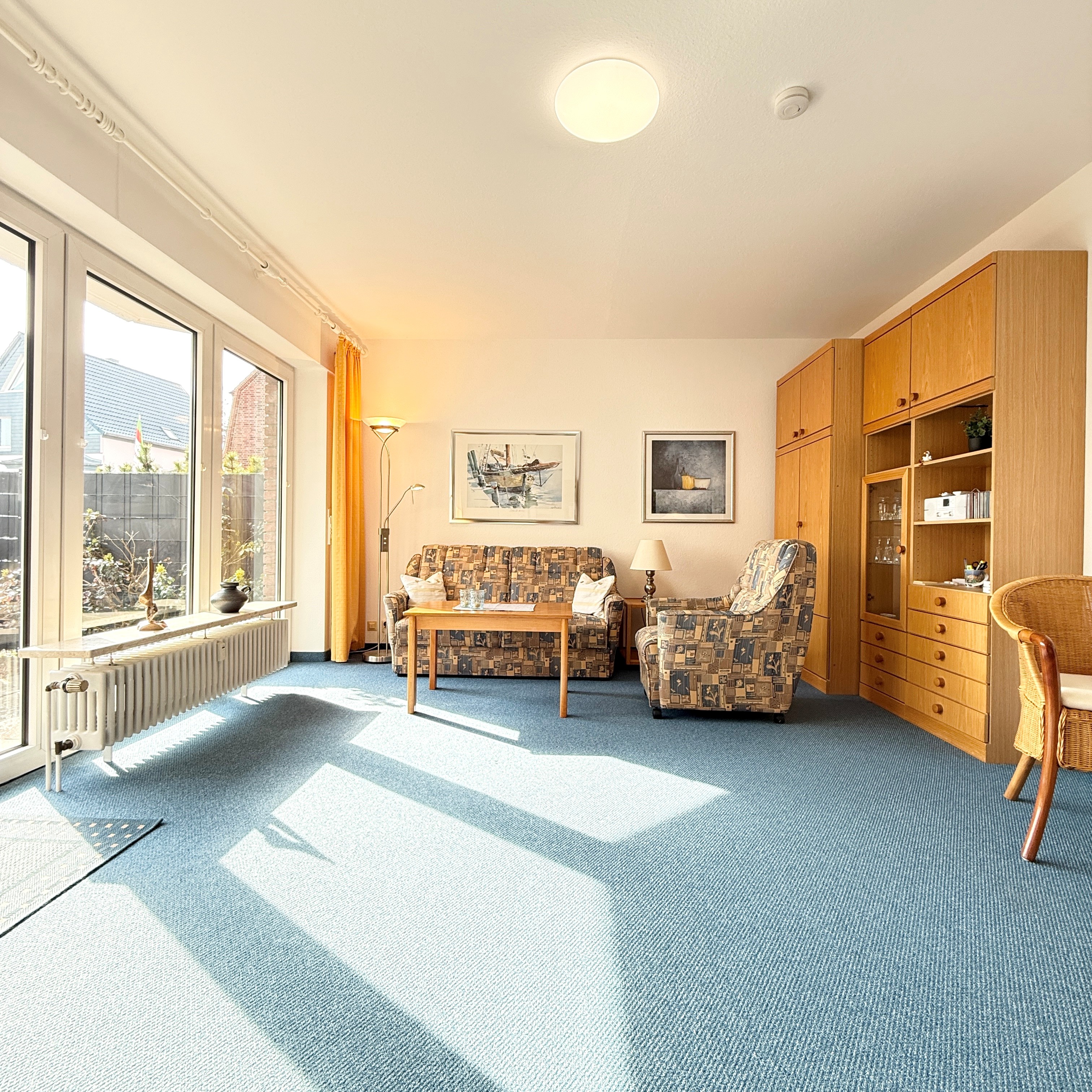 Gemütliche Ferienwohnung in ruhiger Lage von Cuxhaven-Duhnen Die gepflegte Ferienwohnung Voßhörn 3 – Wohnung 02 befindet sich in einer verkehrsberuhigten Straße im beliebten Kurteil Duhnen – einer der schönsten Lagen in Cuxhaven. Der herrliche Sandstrand am Deich sowie das Erlebnisbad „Ahoi“ mit Thalassozentrum sind nur etwa 3 Gehminuten entfernt und machen diese Unterkunft zu einem idealen Ausgangspunkt für Ihren Nordseeurlaub. Die Wohnung bietet ein helles, liebevoll eingerichtetes Wohnzimmer mit gemütlicher Couch, Sessel, Essecke und Flachbild-TV. Das separate Schlafzimmer ist mit zwei Einzelbetten ausgestattet und sorgt für erholsame Nächte. Die separate Küche verfügt über ein Ceranfeld, eine Mikrowelle sowie alle wichtigen Küchenutensilien, während das Badezimmer mit Dusche und WC funktional und gepflegt ist. Für entspannte Stunden im Freien steht Ihnen eine private Terrasse zur Verfügung. Ein Pkw-Stellplatz direkt am Haus rundet das komfortable Angebot ab. Optional können Sie ein Wäschepaket mit Bettwäsche und Handtüchern dazubuchen.