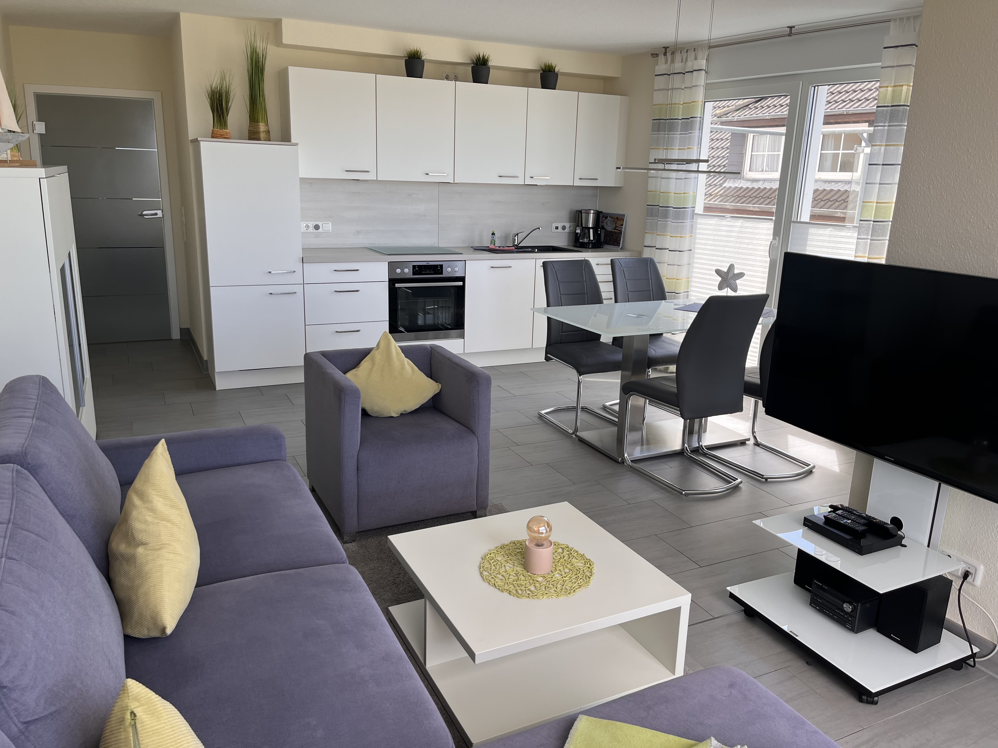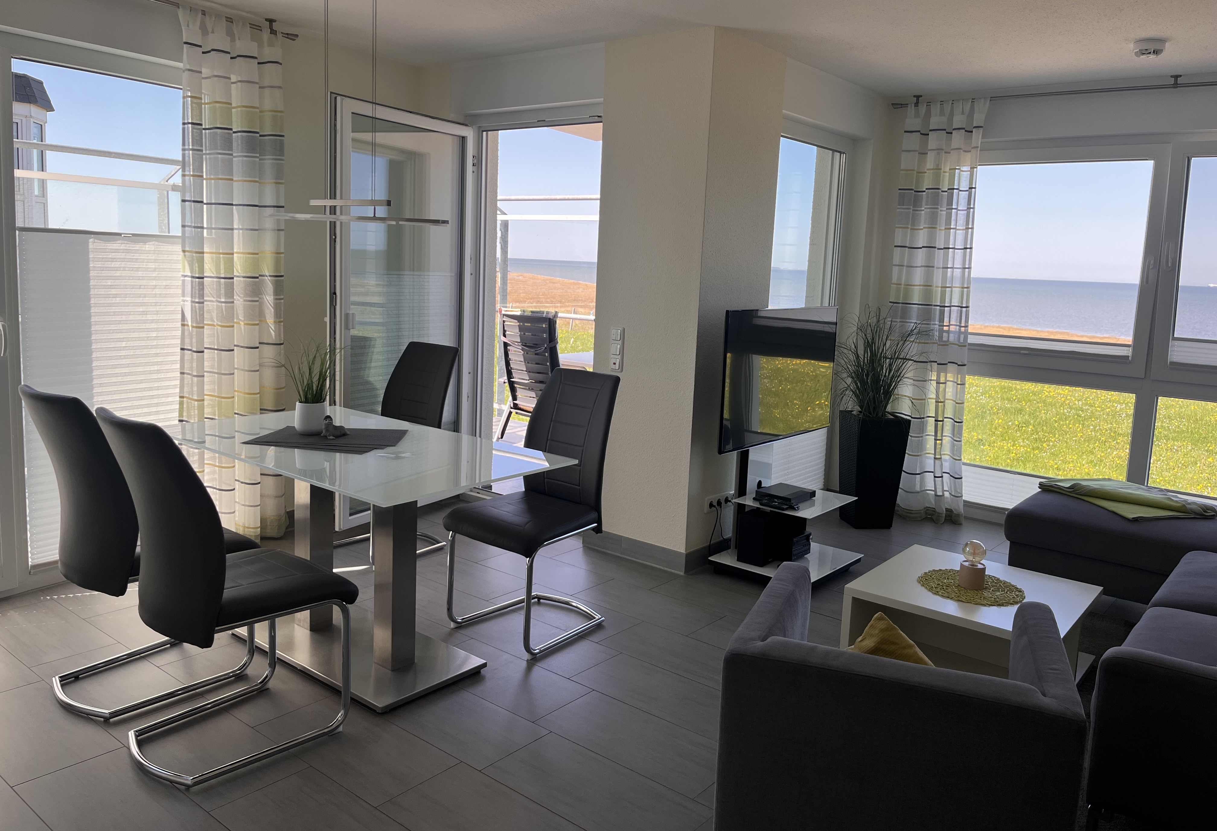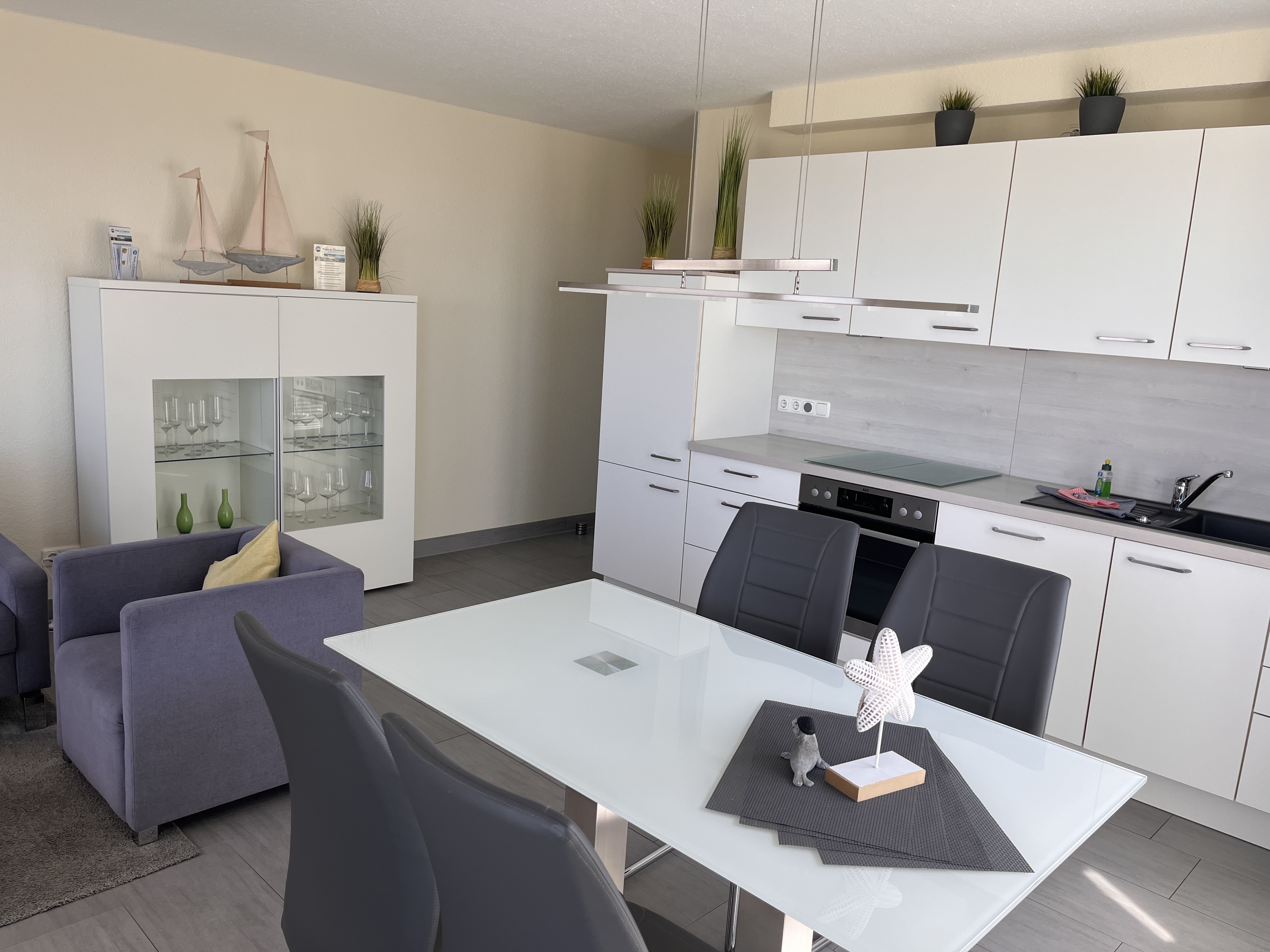 Unsere wunderschöne, helle und neue Ferienwohnung Residenz Windjammer Nr. 12 , in exklusiver Lage, lädt zum Entspannen und Relaxen ein. Ein traumhaft schöner Blick auf die Nordsee und zur Insel Neuwerk sowie auch auf das Wattenmeer und die unglaublich schönen Sonnenuntergänge wird Sie begeistern. Eine Wohlfühloase - Erholung bei Ebbe und Flut Viele verschiedene Schiffe können Sie auf dem Weltschiffartsweg beobachten und bei guter Sicht sogar die Küste von Schleswig Holstein. Zusätzlich können Sie direkt vom Balkon oder auch aus der Wohnung ( durch die bodentiefen Fenster ) die Gezeiten sowie das Wattenmeer und im Naturschutzgebiet die große Vielfalt der Vogelarten beobachten. Aufteilung der Wohnung Die hochwertige Ausstattung lässt nichts missen. Aufgeteilt ist unsere Wohnung mit einem Küchen.- Ess.- Wohnbereich, 1 Schlafzimmer und einem Duschbad. Ein großzügiger Balkon Richtung Norden, Süden und Westen lädt den ganzen Tag zum Entspannen ein. Nach den ausgiebigen Spaziergängen in der kälteren Jahreszeit, wärmt die zusätzliche Fußbodenheizung. Waschmaschine und Trockner befindet sich im Haus. Für die Internetnutzung steht Ihnen ein Internetzugang WLAN kostenlos zur Verfügung. Umgebung 150 m sind es zum Strand mit Strandbistro. Das Meerwasser- Erlebnisbad "Thalasso ahoi!" mit Wellenbad, Riesenrutsche und einer erholsamen Sauna Landschaft sind ca 250 m entfernt. Der wunderschöne Wanderweg lädt zum spazieren gehen ein und führt Sie durch das Naturschutzgebiet Duhner Heide nach Sahlenburg ( ca 4 km ) Mit dem Fahrrad können Sie die schöne Landschaft Cuxhavens und Umgebung auf den angebotenen Radwegen genießen. Cuxland - Urlaub zwischen Nordsee, Elbe und Weser. In ca 300 m, im Duhner Zentrum, laden viele Restaurants und Cafés zum gemütlichen Verweilen ein. Damit unsere kleine Gäste nicht zu kurz kommen, verfügt die unmittelbare Umgebung auch über interessante Spielplätze und sportlich geht es auch beim Minigolf zu. Im Duhner Zentrum und Umgebung bieten sich viele Einkaufsmöglichkeiten, wie Souvenirshops, Kleidung und Lebensmittel.