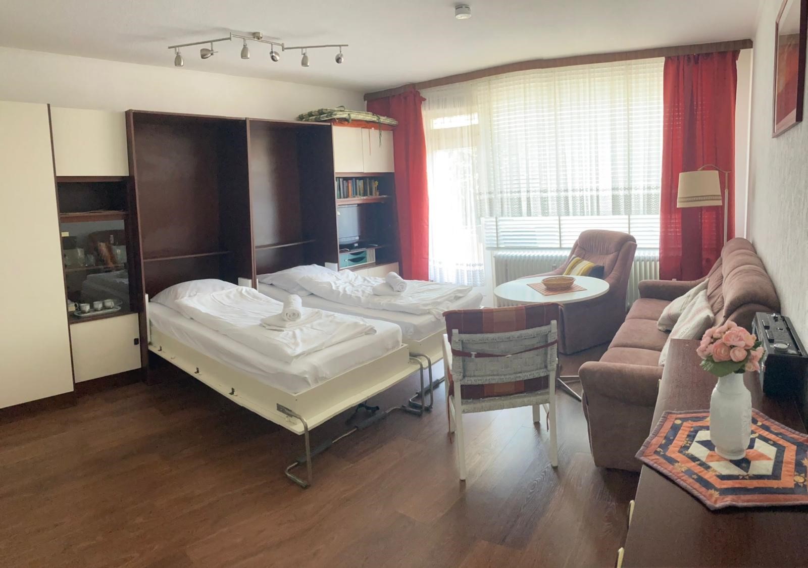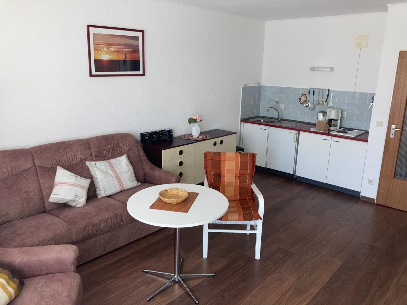 Die im 70er Jahre Stil eingerichtete 1 Raumwohnung hat eine Größe von 38qm und liegt im 2ten OG. Sie befindet sich nur wenige Gehminuten zur Strandpromenade, Restraurants und zum Ortsmitte. Im Wohnschlafraum befinden sich zwei Schrankklappbetten, eine Küchenzeile mit einem 2 Platten Herd, Kaffeemaschine, Wasserkocher. Ein kleine Essecke mit Platz für 2 Personen. Eine Couch und ein Flatscreen. Schöner Balkon mit seitlicher Sicht auf die Nordsee. Badezimmer mit Dusche. Zur der Ferienwohnung gehört ein PKW-Stellplatz. Heizung und Strom inkl. Bettwäsche und Handtücher können gegen Gebühr angemietet werden. Zudem möchten wir Sie darauf hinweisen, dass in unmittelbarer Nachbarschaft des Hauses Baltic, mehrere Neubauten von Eigentumswohnungen geplant sind. Der Starttermin der Bauvorhaben wurde mittlerweile auf September 2021 bis Mitte 2024 festgelegt. Wenn die Bauarbeiten beginnen, können tagsüber zwischen 08:00 und 18:00 Uhr Lärmbelästigungen nicht ausgeschlossen werden.