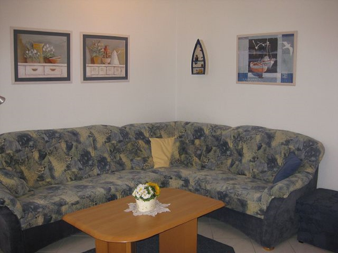 Die ca. 65qm große 3-Zimmer-Wohnung liegt im 1.OG und ist mit bis zu 4 Personen belegbar.Zwei Schlafzimmer, davon eins mit regulären Betten sowie ein weiteres mit Einzelbetten. Extra Küche mit Geschirrspüler, Backofen, Mirowelle, Gerfierfach. Das Wohnzimmer ist ausgestattet mit einer gemütlichen Rundcouch, Flatscreen und einer Essecke. Außerdem verfügt die Wohnung über einen großer Balkon, Dusche/WC, Kinderbett, Wickelauflage. Zu der Wohnung gehört ein PKW-Stellplatz und ein Fahrradschuppen. Waschmaschine und Trockner gegen Gebühr im Haus vorhanden. Allergiker geeignet, Kinderfreundlich. Strandkorb inkl.(Saison:Mai bis Oktober). Die angegebenen Preise gelten pro Ferienwohnung und Übernachtung. Wäschepaket zubuchbar.Mindestaufenthaltsdauer in der Hauptsaison 7 Übernachtungen, in der Nebensaison auf Anfrage.