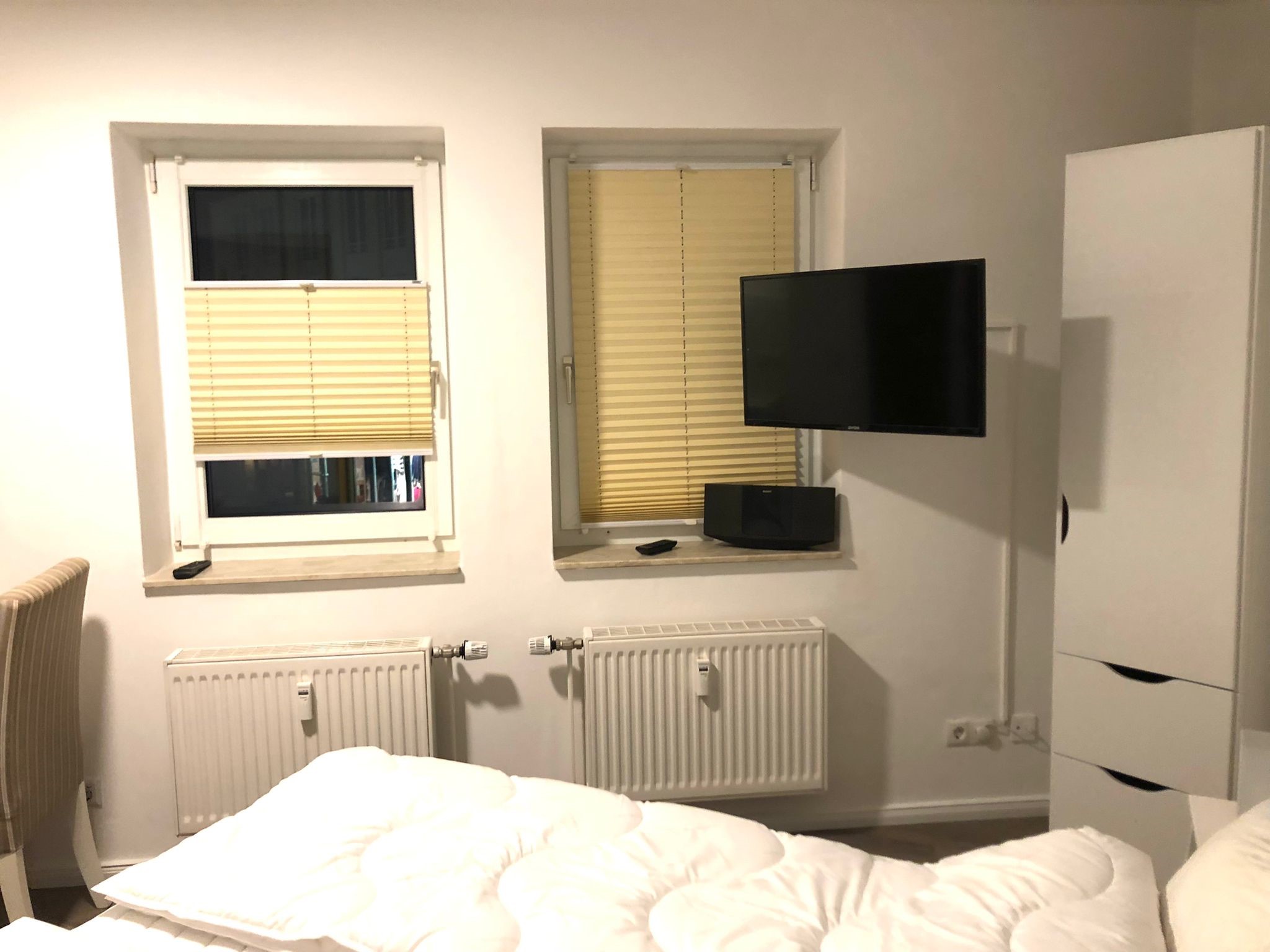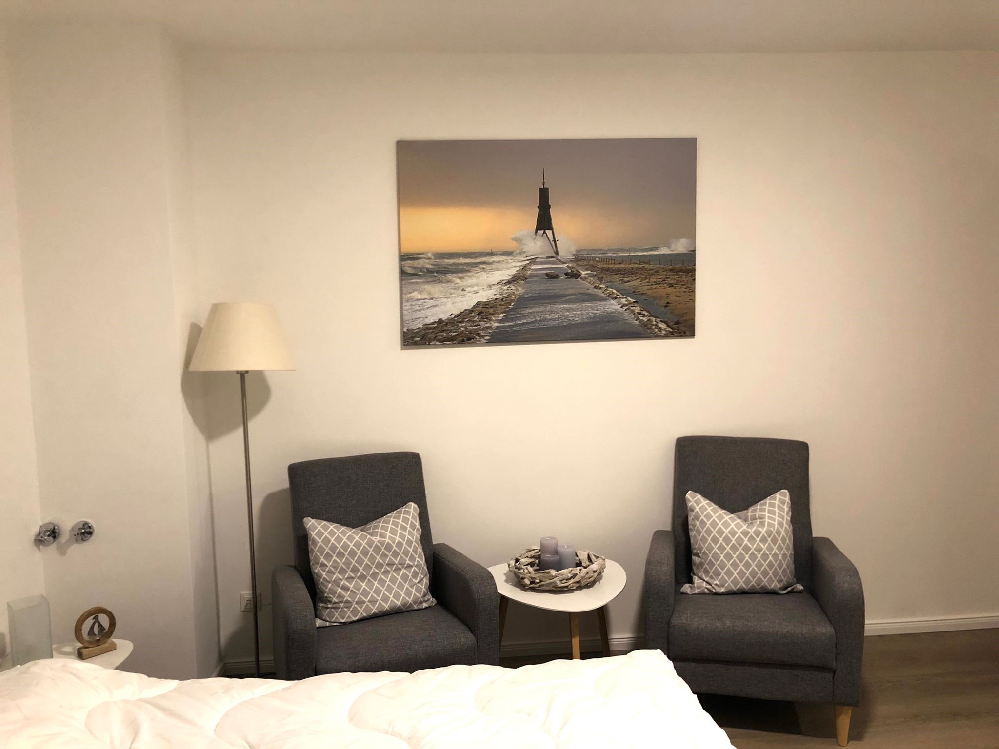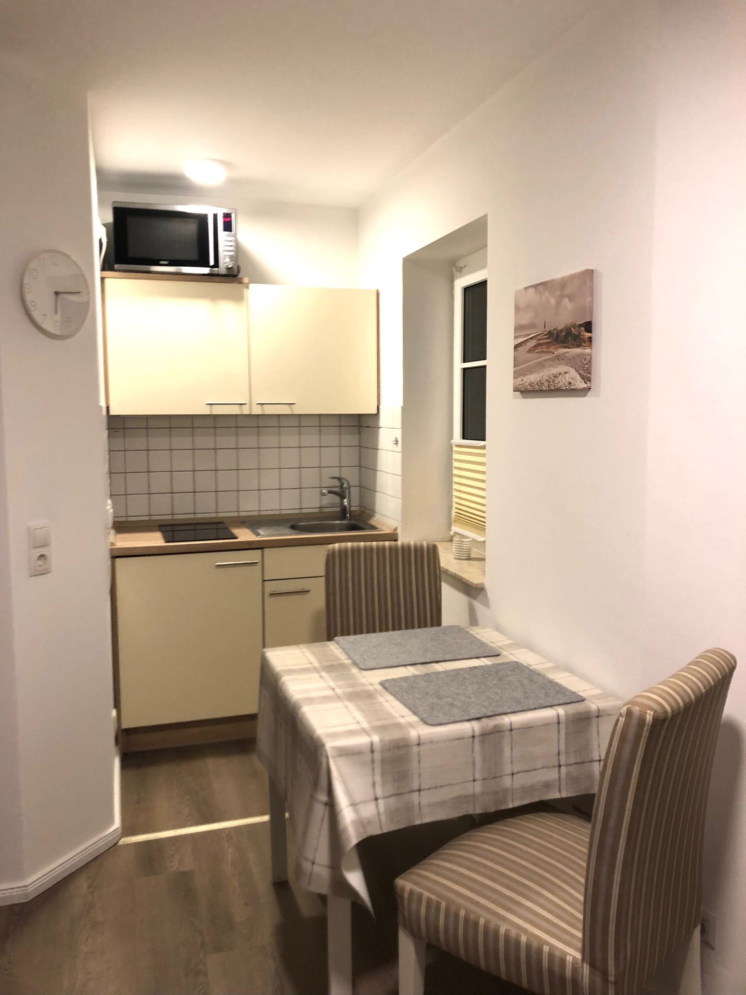 Charmantes 1-Raum-Apartment „Kapitänskajüte“ im Haus Elbe 1 in Duhnen Das gemütliche 1-Raum-Apartment "Elbe 1/21" oder auch „Kapitänskajüte“ befindet sich im Haus Elbe 1, zentral im Herzen von Duhnen. Strandpromenade und Dorfbrunnen sind nur wenige Gehminuten entfernt. Restaurants, Bäcker und Einkaufsmöglichkeiten liegen bequem zu Fuß in der Nähe. Mit ca. 29 m² bietet die Ferienwohnung Platz für bis zu 2 Personen. Der Wohnbereich ist ausgestattet mit einem großen Boxspringbett, einem Fernseher und zwei Sesseln – perfekt für entspannte Stunden. Die Küchenzeile verfügt über Mikrowelle, Kaffeemaschine, Wasserkocher, Toaster und einen Herd mit 2 Kochfeldern, ideal für kleine Mahlzeiten. Ein eigener Tiefgaragenstellplatz gehört zur Wohnung. Fahrräder können sicher untergestellt werden. Waschmaschine und Trockner sind im Haus vorhanden. Bettwäsche und Handtücher können bei Bedarf hinzugebucht werden.
