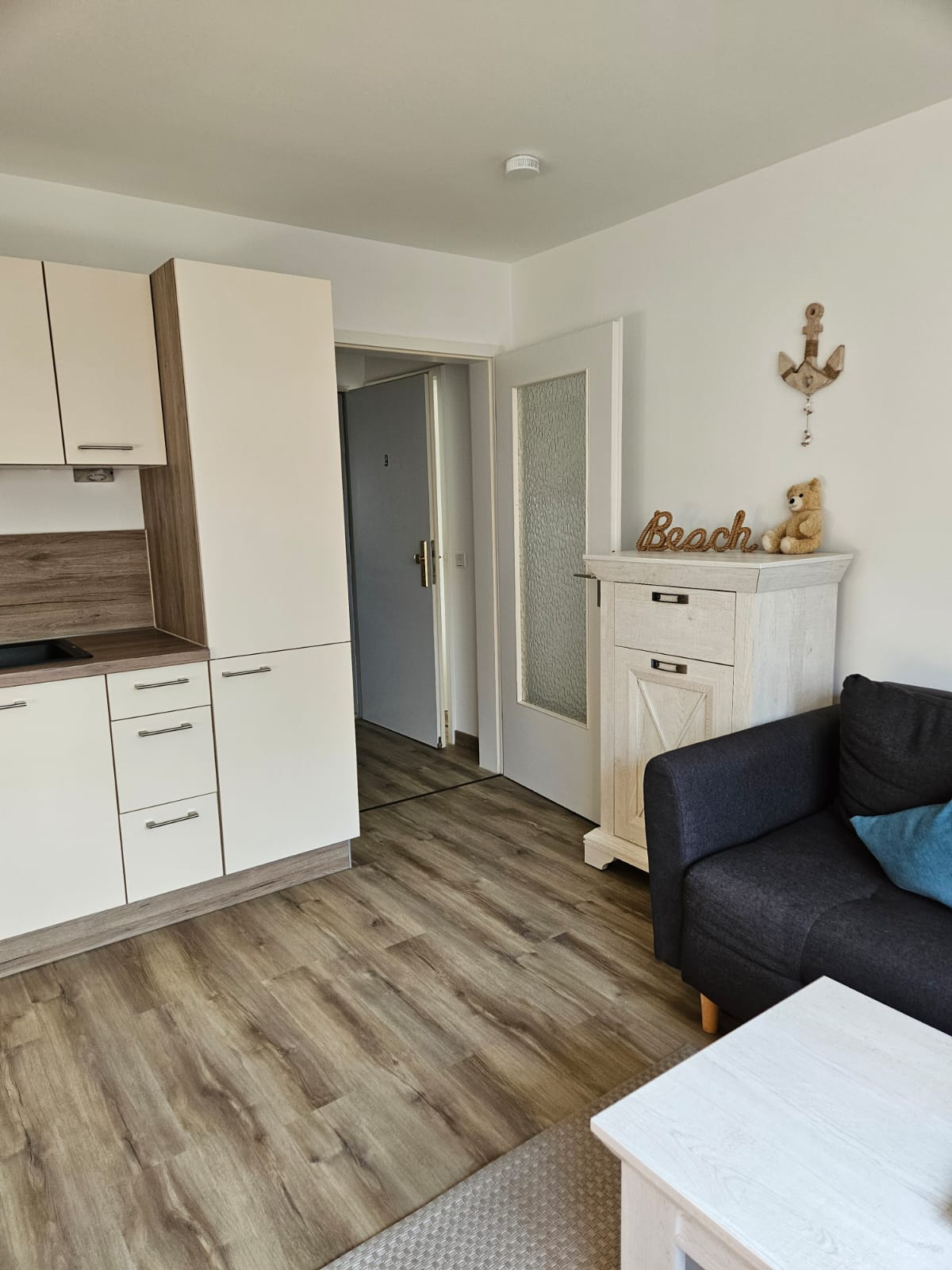 Die geschmackvolle eingerichtete Ferienwohnung lädt zum Entspannen ein. Sie ist für 3 Personen ausgelegt und hat eine Größe von 34qm. Die Wohnung verfügt über eine Küchenzeile mit Ceranfeld, Backofen, Kaffeemaschine. Zudem ist das Wohnzimmer mit einer hochwertigen Schlafcouch, einem großen Fernseher und einer Essecke ausgestattet. Genießen Sie die Ruhe im liebevollen gestalteten Schlafzimmer mit Doppelbett und großen Schrank. Das Badezimmer ist mit einer Dusche ausgestattet. Ein Highligt ist die schöne Terrasse, die ruhig gelegen ist und zum Ausklingen der Urlaubstage einlädt. Kostenloser Tiefgaragen-Stellplatz. Bettwäsche und Handtücher können Sie gegen eine Gebühr zubuchen.
