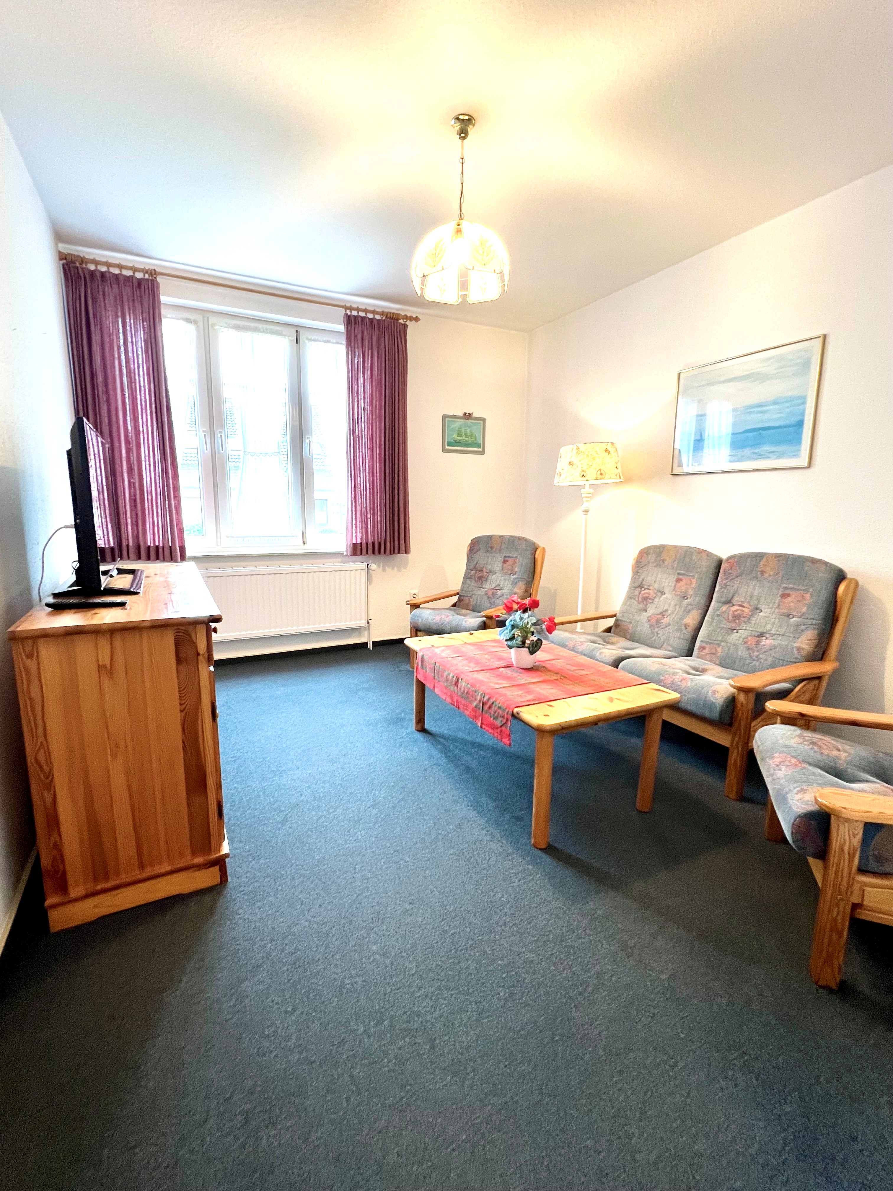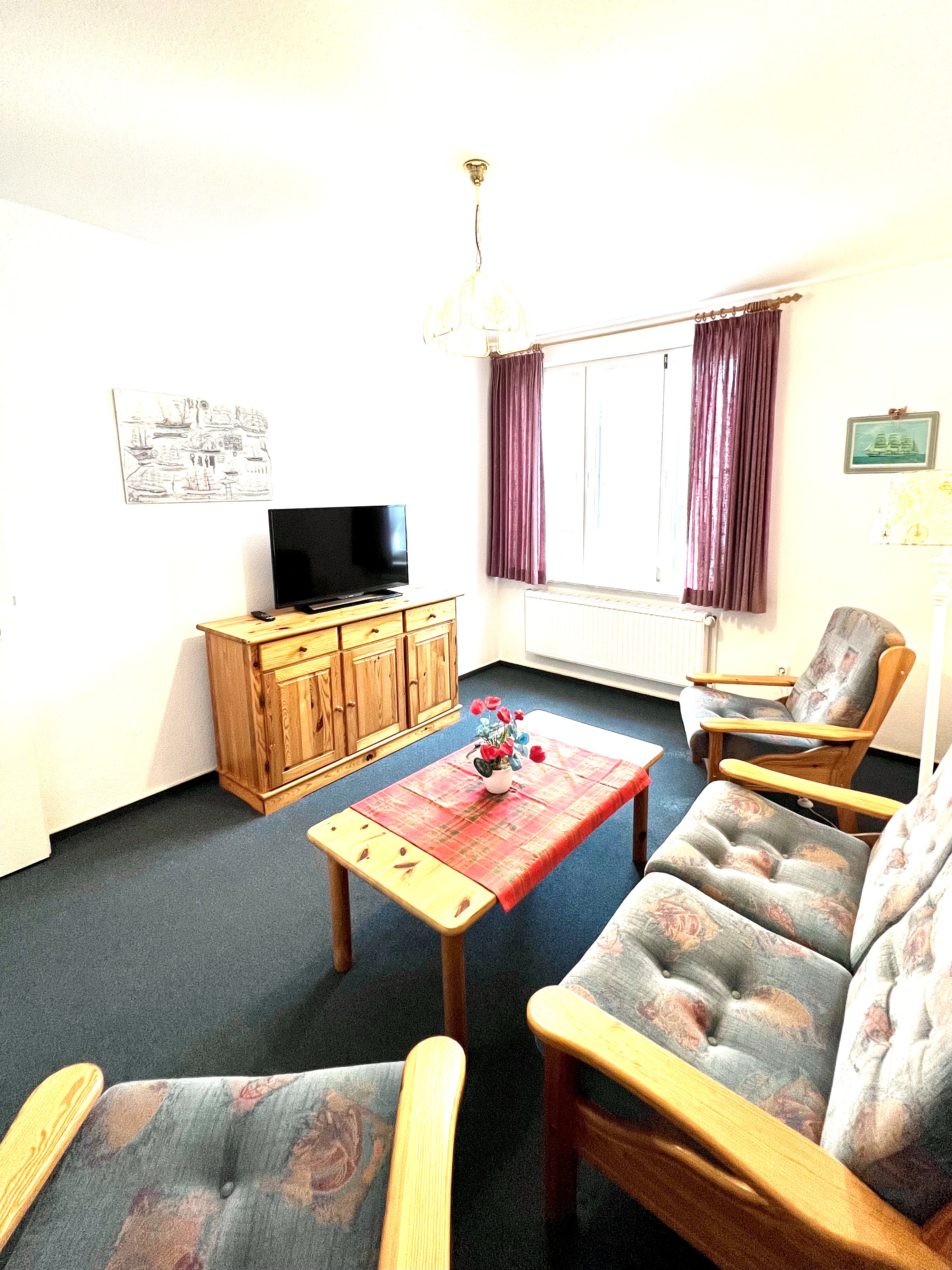 Ferienwohnung Nordseegruß 01 – Gemütlich und strandnah in Cuxhaven-Duhnen Das Haus „Nordseegruß“ im Mühlentrift 45 bietet Ihnen in der Wohnung 1 eine behagliche Atmosphäre und nur 3 Gehminuten vom Sandstrand. In unmittelbarer Nähe befinden sich das Meerwasserfreibad, das Kurmittelhaus sowie diverse Einkaufsmöglichkeiten – perfekt für einen rundum entspannten Urlaub an der Nordsee. Die Ferienwohnung verfügt über zwei Schlafzimmer, einen Wohnraum mit Kabel-TV, eine separate Küche mit Sitzgelegenheit sowie ein Badezimmer mit Dusche und WC. Die Küche ist ausgestattet mit Kaffeemaschine, Wasserkocher, Toaster, 4-Platten-E-Herd, Backofen sowie einem Kühlschrank mit Gefrierfach. Für unsere kleinen Gäste stehen Kinderbetten und Hochstühle bereit. Die gemeinschaftliche Gartenanlage mit Terrasse, Liege- und Spielwiese lädt zum Verweilen und Entspannen ein. Für Kinder gibt es eine Doppelschaukel, Rutsche und Wippe. Ihr Auto parken Sie bequem auf dem Hof, der auch über ein Fahrradhaus verfügt.