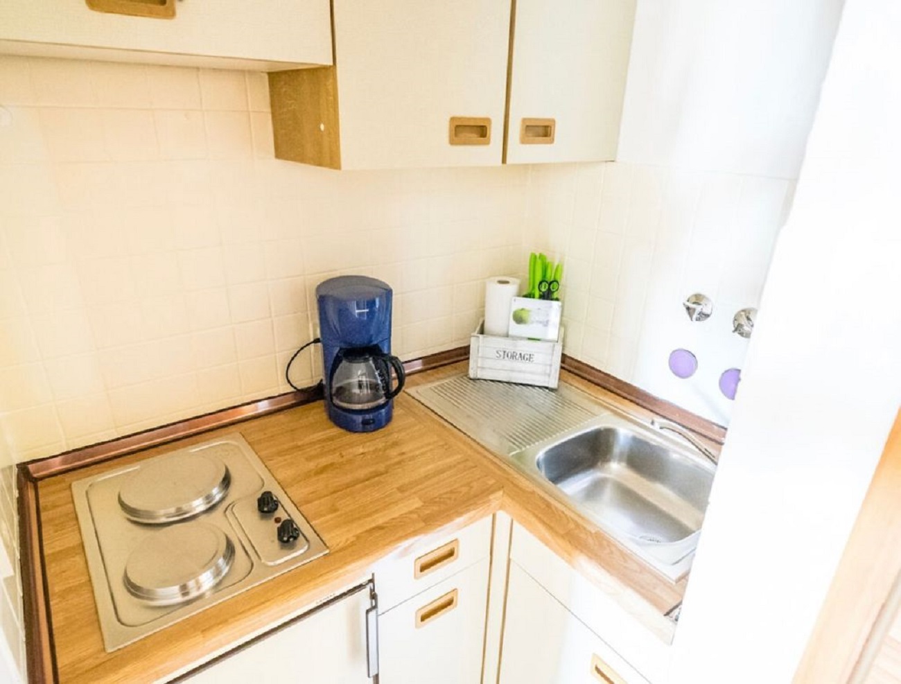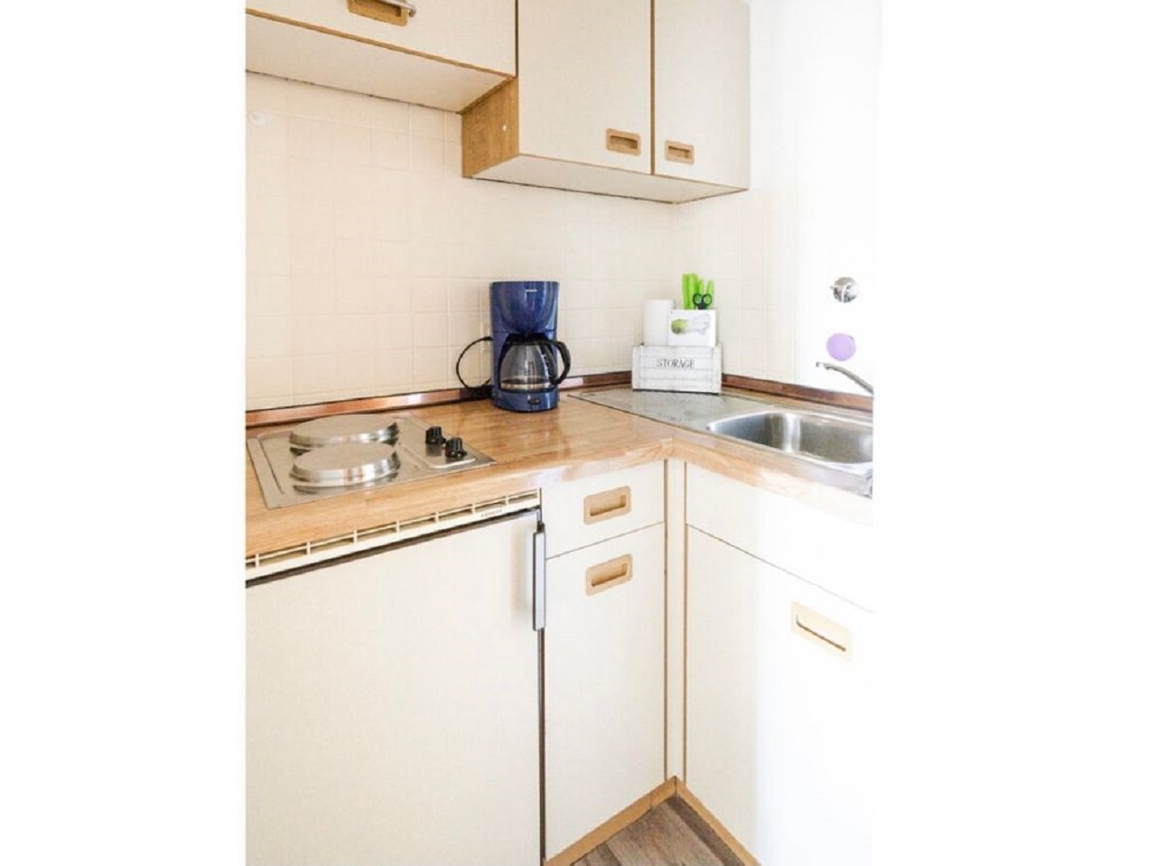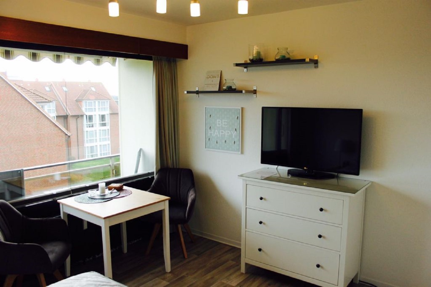 Ruhiges Apartment mit Balkon in Strandnähe – ideal für 2 Personen Die charmante Ferienwohnung „Jan am Strand 315“ befindet sich im 3. Obergeschoss einer gepflegten Apartmentanlage in Cuxhaven-Döse – nur wenige Minuten vom Strand entfernt. Sie ist ideal für alleinreisende Gäste oder Paare, die erholsame Tage an der Nordseeküste verbringen möchten. Das 1-Zimmer-Apartment ist für zwei Personen ausgelegt und bietet einen komfortablen Wohn- und Schlafbereich mit bequemem Bett, TV, Essplatz sowie Zugang zum Balkon mit Blick ins Grüne. Hier lässt es sich wunderbar entspannen – ob beim Frühstück in der Morgensonne oder mit einem Buch am Nachmittag. Die praktische Küchenzeile ist separat in einer kleinen Nische untergebracht und mit einem 2-Platten-Herd, einer Mikrowelle sowie den wichtigsten Utensilien ausgestattet – perfekt für kleine Mahlzeiten zwischendurch. Das helle Duschbad rundet das angenehme Wohnkonzept ab. Zur Wohnung gehört ein kostenloser WLAN-Zugang sowie ein Tiefgaragenstellplatz (max. Einfahrtshöhe: 1,48 m) – ideal für eine sorgenfreie Anreise. Gegen eine kleine Gebühr können Sie außerdem das Schwimmbad mit Sauna und Fitnessbereich im Nebengebäude mitbenutzen.