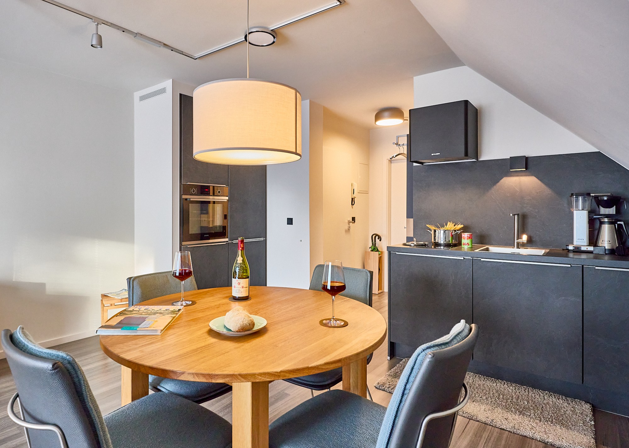 Ferienwohnung Oasis 07 – Gemütliches 2-Zimmer-Apartment mit Balkon und Strandkorb Diese top ausgestattete, gemütliche Ferienwohnung in Döse an der Grenze zu Duhnen liegt in der 2. Etage und bietet Platz für bis zu zwei Personen. Der offene Wohn- und Essbereich lädt zum Entspannen und gemeinsamen Verweilen ein. Vom Wohnraum gelangen Sie direkt auf den hochwertigen Südbalkon mit weitem Blick über Döse und in den Gemeinschaftsgarten. Im Schlafzimmer befindet sich ein Doppelbett (160 x 200 cm) mit zwei einzelnen Tonnentaschenfederkernmatratzen. Alle Fenster sind mit Verdunkelungsmöglichkeiten ausgestattet. Zur Wohnung gehört ein fester Stellplatz in der hauseigenen Tiefgarage (Durchfahrtshöhe 2,00 m). Parkmöglichkeiten vor dem Haus sind ebenfalls vorhanden. Ein Starterpaket mit Geschirrspültabs, Spülmittel, Spültuch, Geschirrtuch und Müllbeuteln ist im Preis enthalten, ein Wäschepaket kann auf Anfrage dazugebucht werden. Kostenloses WLAN, Nichtraucherwohnung, keine Haustiere. Aktivitäten in der Umgebung: Radfahren, Joggen, Wattwandern, Windsurfen, Foilsurfen Wohnbereich: 4K-TV mit Online-Anschluss, 4K-DVD-Player, DAB-Radio mit CD-Player, WLAN mit Passwort. Schlafbereich: Doppelbett 160x200 m (einzelne Matratzen), Radio, Bügeleisen Küche: Ceranfeld, Kühlschrank mit Gefrierfach, Geschirrspüler Backofen, Abzugshaube, Kaffeemaschine, Wasserkocher, Toaster, Eierkocher uvm. Sanitär: Haartrockner, Bad mit Fenster Außenbereich: Balkon (Südseite) mit hochwertigen Balkonmöbeln, kostenloser Strandkorb am 300m entfernten Sandstrand, eigener Tiefgaragenparkplatz, Sauna inkl. Ruheraum im Souterrain.