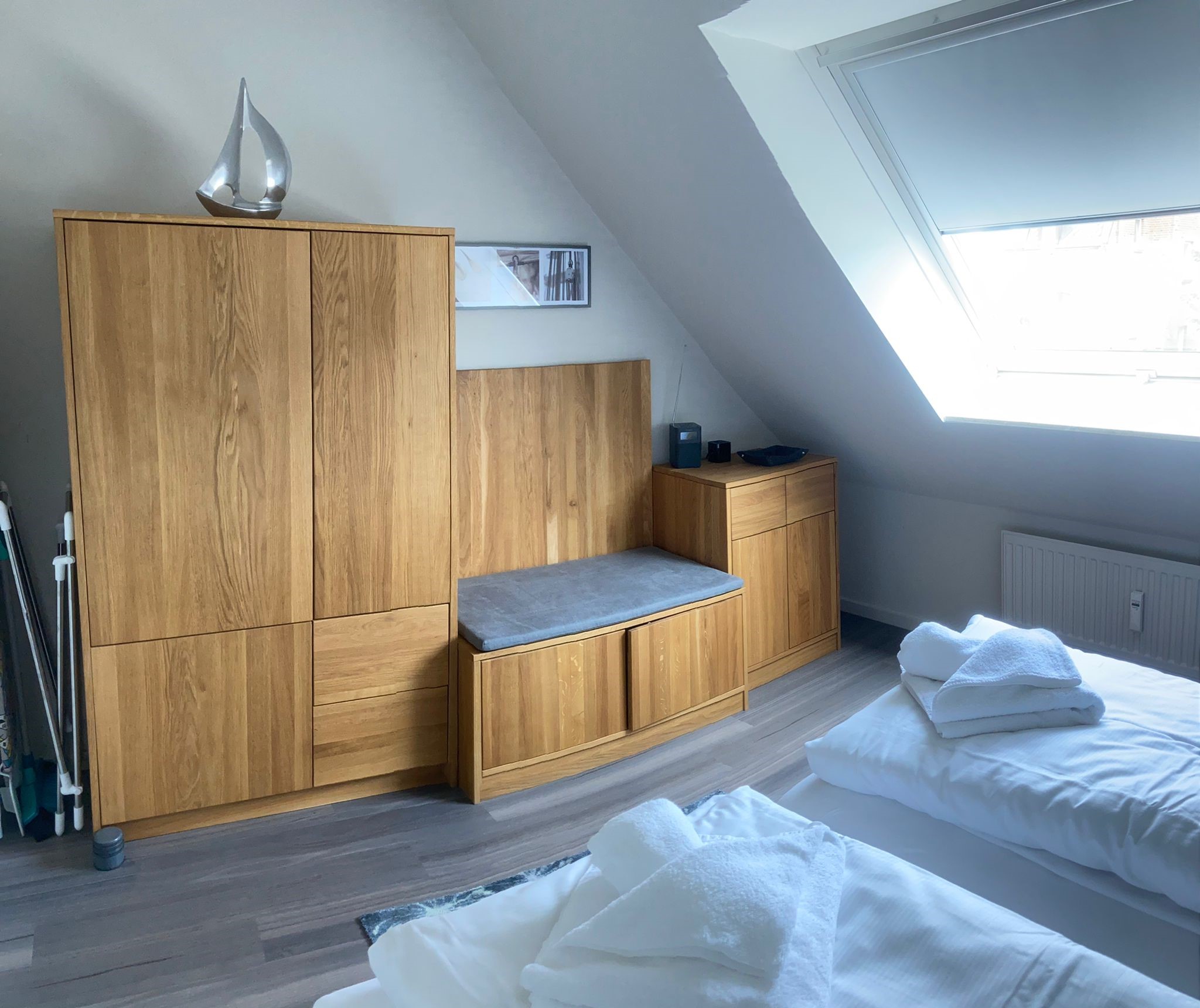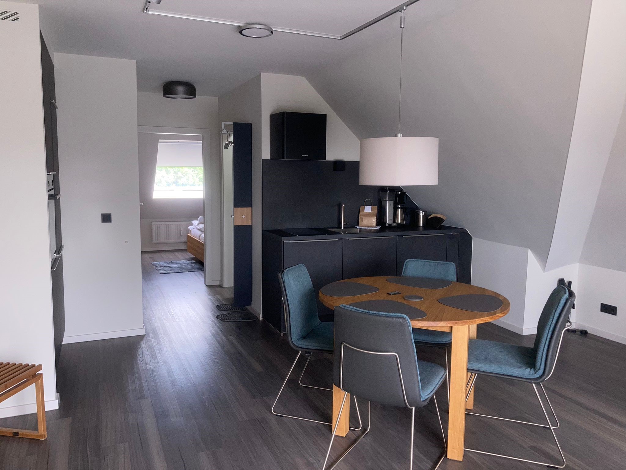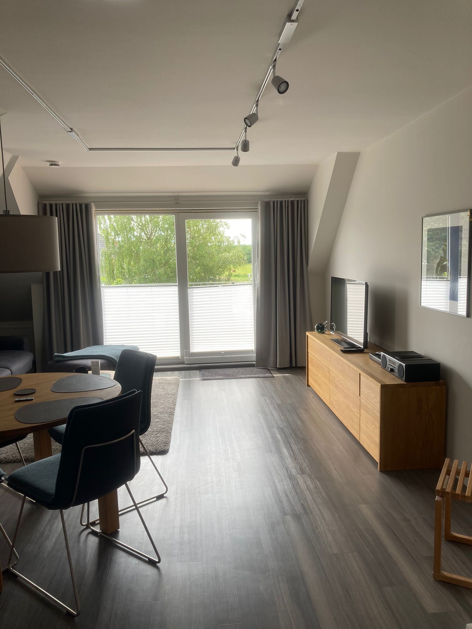 Ferienwohnung Oasis 07 – Gemütliches 2-Zimmer-Apartment mit Balkon und Strandkorb Diese top ausgestattete, gemütliche Ferienwohnung in Döse an der Grenze zu Duhnen liegt in der 2. Etage und bietet Platz für bis zu zwei Personen. Der offene Wohn- und Essbereich lädt zum Entspannen und gemeinsamen Verweilen ein. Vom Wohnraum gelangen Sie direkt auf den hochwertigen Südbalkon mit weitem Blick über Döse und in den Gemeinschaftsgarten. Im Schlafzimmer befindet sich ein Doppelbett (160 x 200 cm) mit zwei einzelnen Tonnentaschenfederkernmatratzen. Alle Fenster sind mit Verdunkelungsmöglichkeiten ausgestattet. Zur Wohnung gehört ein fester Stellplatz in der hauseigenen Tiefgarage (Durchfahrtshöhe 2,00 m). Parkmöglichkeiten vor dem Haus sind ebenfalls vorhanden. Ein Starterpaket mit Geschirrspültabs, Spülmittel, Spültuch, Geschirrtuch und Müllbeuteln ist im Preis enthalten, ein Wäschepaket kann auf Anfrage dazugebucht werden. Kostenloses WLAN, Nichtraucherwohnung, keine Haustiere. Aktivitäten in der Umgebung: Radfahren, Windsurfen, SUP, Wattwandern, Saunagänge uvm. Wohnbereich: 4K-TV mit Online-Anschluss, 4K-DVD-Player, DAB-Radio mit CD-Player, WLAN mit Passwort. Schlafbereich: Doppelbett mit getrenntem Lattenrost und Einzelmatratzen, VELUX-Fenster mit elektrischer Außenjalousie, Ladestation für USB-Anschlüsse, DAB-Radio. Küche: Ceranfeld, Backofen, Kühlschrank mit Gefrierfach, Geschirrspüler, Kaffeemaschine „Moccamaster“, Toaster, Wasserkocher, Eierkocher sowie vollständige Ausstattung mit Geschirr, Gläsern und Kochgeschirr. Sanitär: Modernes Bad mit Haartrockner. Außenbereich: Balkon mit Terrassenmöbeln und Auflagen, eigener Strandkorb am 300 m entfernten Sandstrand (inklusive), Sauna und Ruheraum im Kellergeschoss.