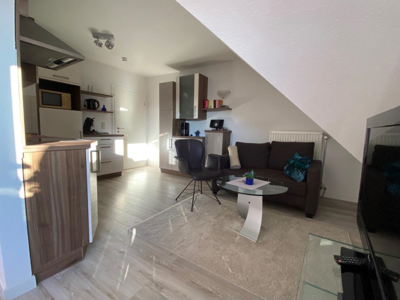 Ferienwohnung Oasis 08 – Modernes 1-Raum-Nichtraucherappartement mit Balkon Das hochwertig und modern eingerichtete 1-Raum-Nichtraucherappartement befindet sich in der 2. Etage des Hauses Oasis (Eingang 115) in Cuxhaven-Döse, direkt an der Grenze zu Duhnen. Strand und Meerwasserfreibad Steinmarne sind nur wenige Gehminuten entfernt. Das Appartement verfügt über einen offenen Wohnschlafraum mit Doppelbett, eine angrenzende Küchenzeile, einen kleinen Südbalkon mit Blick ins Grüne sowie ein hochwertig saniertes Duschbad. Der Wohnschlafraum ist mit moderner Sitzgarnitur, Flachbildfernseher, Stereoanlage und WLAN ausgestattet. Die Küche bietet Kühlschrank, Backofen mit Ceranfeld und Mikrowelle. Ein Stellplatz in der hauseigenen Tiefgarage (Einfahrtshöhe 1,90 m) gehört zur Wohnung. Im Haus steht eine Sauna zur Verfügung, die gegen Gebühr genutzt werden kann. Haustiere sind nicht erlaubt, und das Appartement ist rauchfrei.