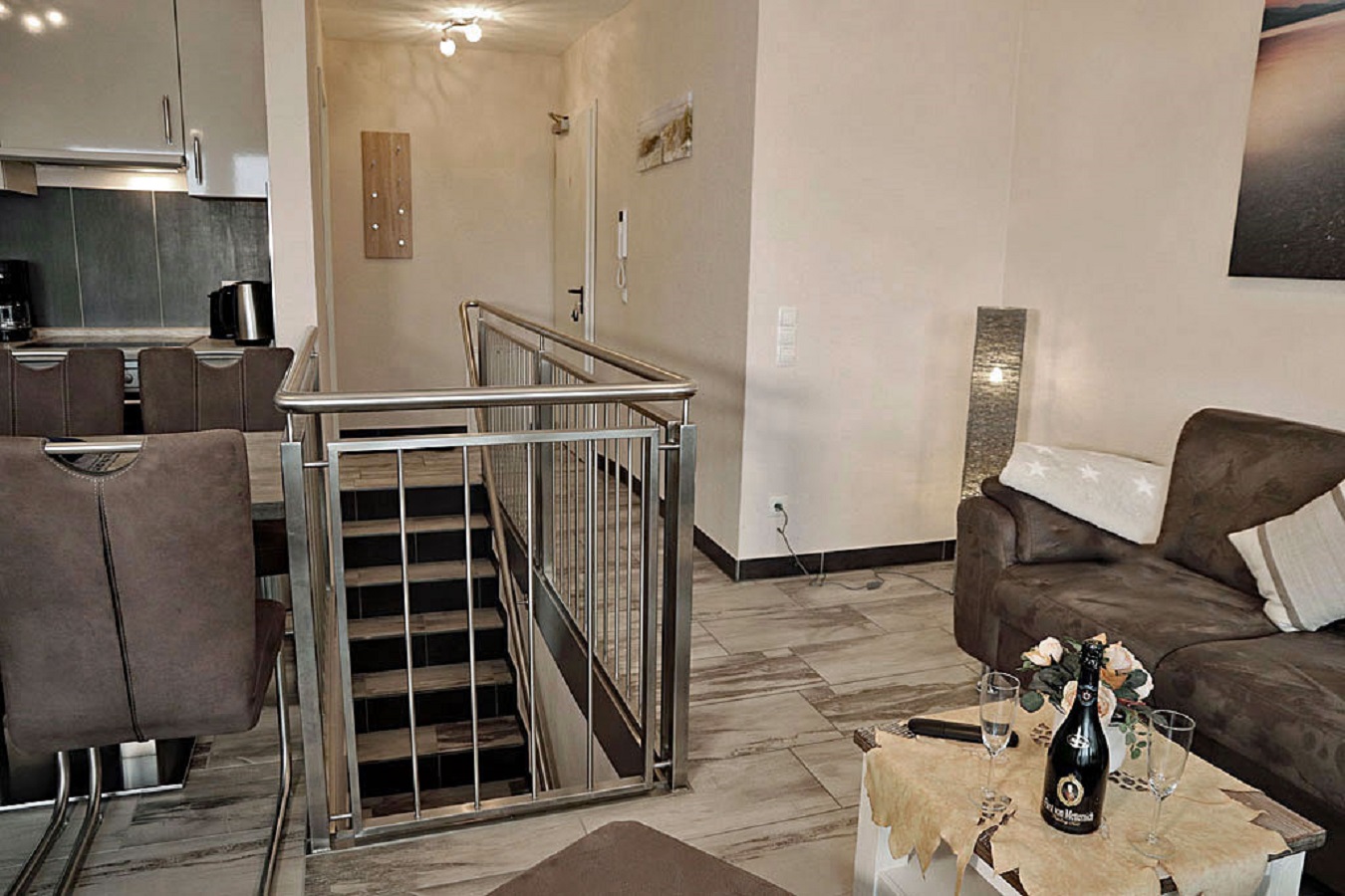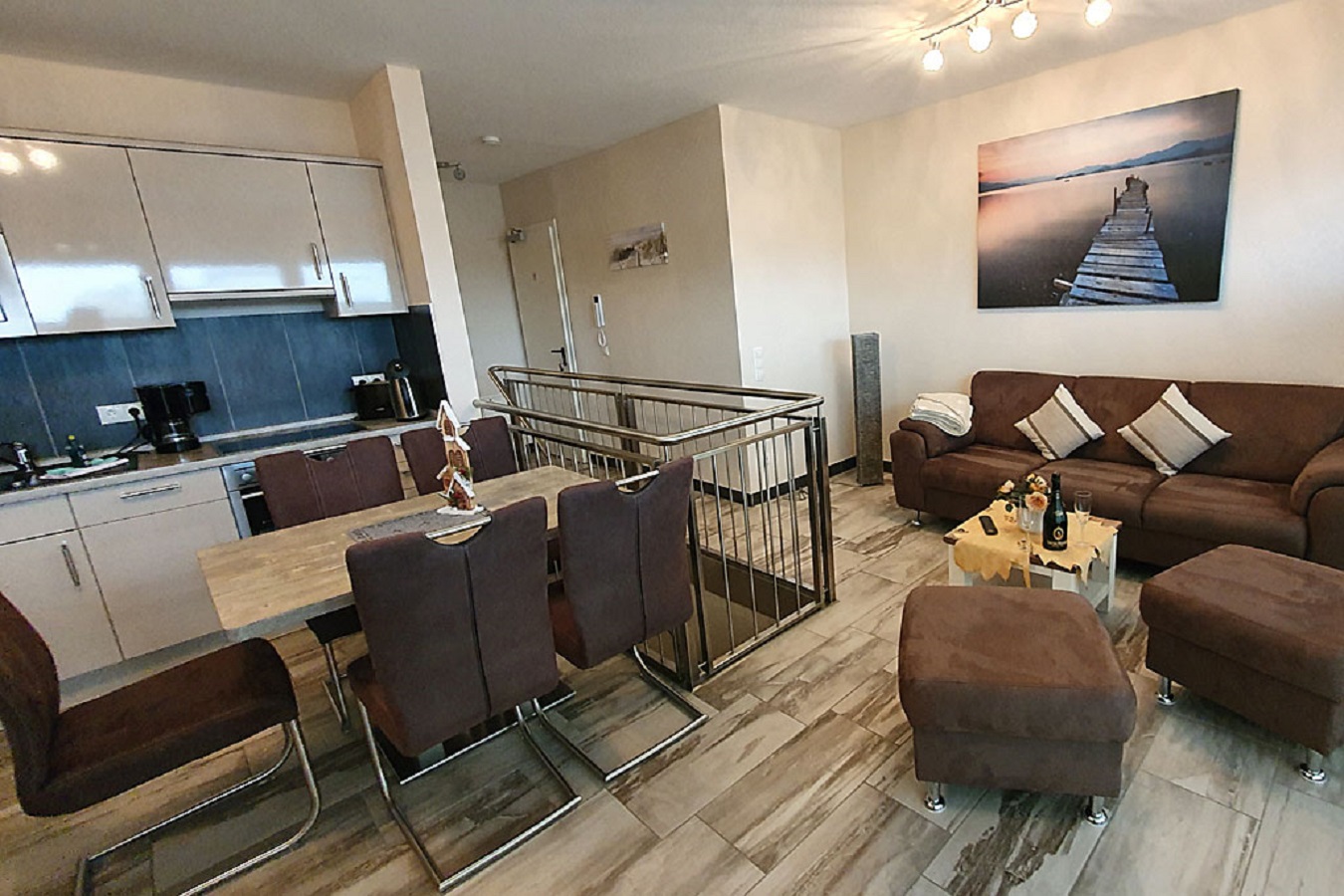 Das Appartmenthaus liegt direkt im Ortskern von Duhnen. Der Duhner Sandstrand sowie das Thalassozentrum "ahoi!" sind nur ca. 150 m entfernt. Restaurants, Bars und Einkaufsmöglichkeiten sowie Arzt, Apotheke und Bäcker sind in wenigen Gehminuten zu erreichen. Die geschmackvoll, komplett eingerichtete Wohnung, für bis zu 4 Personen, befindet sich im Erdgeschoss und 1 Etage. Die ca. 100 qm sind wie folgt aufgeteilt: Im Erdgeschoss haben Sie ein Schlafzimmer mit Doppelbett, Kleiderschrank und Fernseher, Dusche/WC, Waschmaschine, Terrasse. In der 1. Etage befindet sich der Wohnbereich mit Couch und großem Fernseher, Küche mit allen notwendigen Geäten (Geschirrspüler, Kaffeemaschine, Wasswekocher usw.) Esstisch mit 6 Stühlen, vom Wohnbereich können Sie direkt auf den großzügen Balkon treten der zum relaxen einlädt, das Schlafzimmer ist mit Doppelbett Fernseher und Schrank eingerichtet, Dusche/WC, Alle Räume haben Fenster und sind mir Außenrolläden versehen. Zu Ihrem Appartement gehört ein Außenstellplatz und eine Garage (von der Sie die Wohnung betreten können). Die angegebenen Preise gelten pro Ferienwohnung und Übernachtung. Wäschepaket zubuchbar. Mindestaufenthaltsdauer in der Hauptsaison 7 Übernachtungen, in der Nebensaison auf Anfrage.