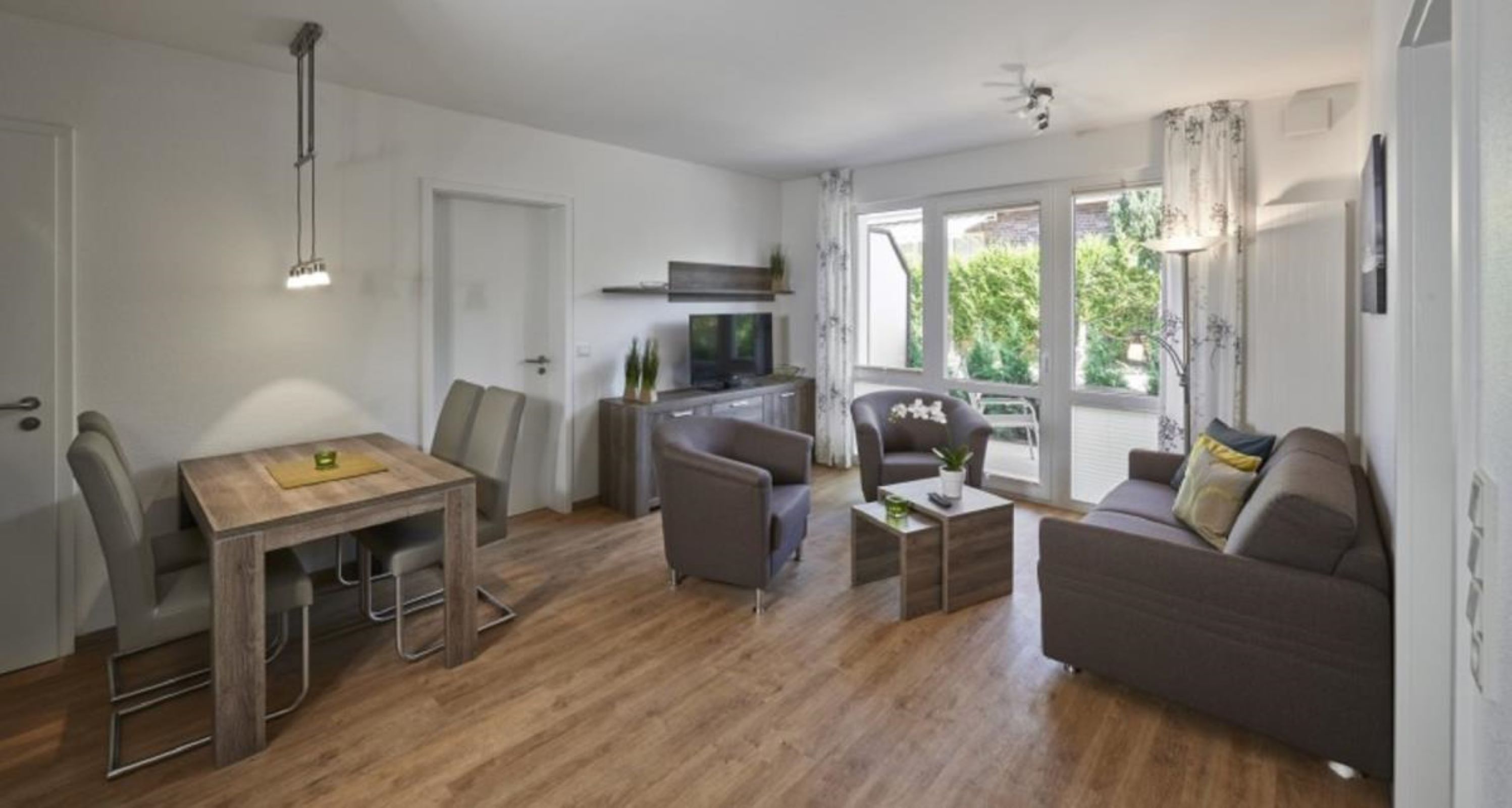 Ihr Nordseeurlaub in moderner Atmosphäre – Ferienwohnungen in der Anlage „Op de Geest“ in Duhnen Willkommen in der modernen Ferienwohnanlage „Op de Geest“ im Rugenbargsweg 37 – ideal gelegen im beliebten Kurteil Duhnen. In ruhiger Lage und dennoch nah am Zentrum sowie Strand gelegen, erwarten Sie insgesamt 16 hochwertig ausgestattete Ferienwohnungen für einen komfortablen und entspannten Aufenthalt an der Nordsee. Ob als Paar, Familie oder mit Freunden – hier finden Sie die passende Unterkunft für Ihre Bedürfnisse. Die Wohnungen verfügen über zwei seperate Schlafzimmer, eine helle Wohnküche mit Essbereich, sowie ein modernes und vollständig ausgestattetes Badezimmer. Die Küchen lassen keine Wünsche offen: Geschirrspüler, Ceranfeld, Backofen, Kaffeemaschine, Toaster und vieles mehr stehen Ihnen zur Verfügung. Die 59 m² große Wohnung befindet sich im Erdgeschoss und verfügt über direkten Zugang zum Garten – ideal für Familien mit Kindern oder Gäste, die gerne im Grünen frühstücken möchten. Die Einrichtung ist durchgehend modern, hochwertig und auf Wohlfühlen ausgelegt – mit stilvollen Möbeln, komfortablen Betten und einem durchdachten Raumkonzept. Jede Wohnung verfügt über kostenloses WLAN und einen hauseigenen Parkplatz direkt am Gebäude. Wäschepakete sind bei uns bequem zubuchbar. Das Mitbringen von Haustieren ist im Hause „Op de Geest“ jedoch nicht gestattet. Besondere Extras der Anlage „Op de Geest“: Hauseigenes Anreisebüro im Untergeschoss – keine weiten Wege zur Schlüsselübergabe Waschküche mit Waschmaschine und Trockner (gegen Gebühr) Spieleraum mit Kickertischen für Groß und Klein Abschließbare Fahrradunterstellmöglichkeiten Ruhige, dennoch zentrale Lage – Strand, Promenade, Restaurants und Einkaufsmöglichkeiten sind fußläufig erreichbar Genießen Sie einen sorgenfreien und komfortablen Urlaub an der Nordseeküste – mit allem, was dazu gehört. „Op de Geest“ ist Ihre moderne Ferienadresse in Cuxhaven-Duhnen.