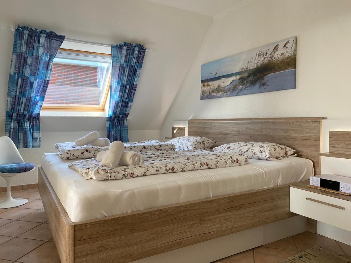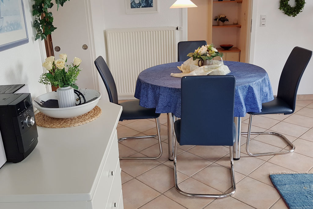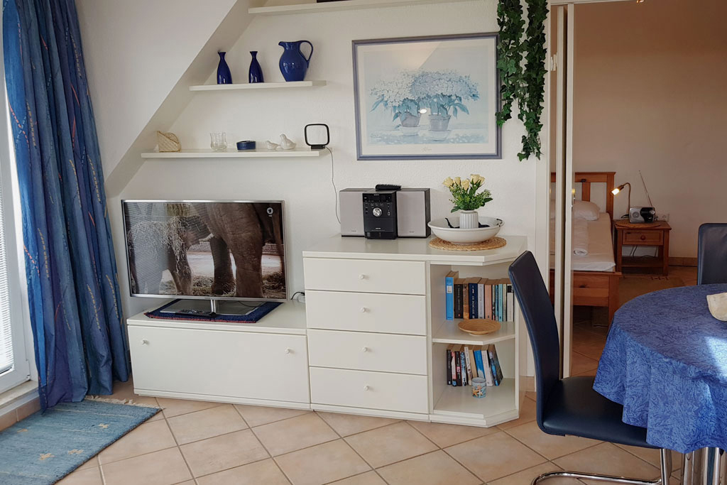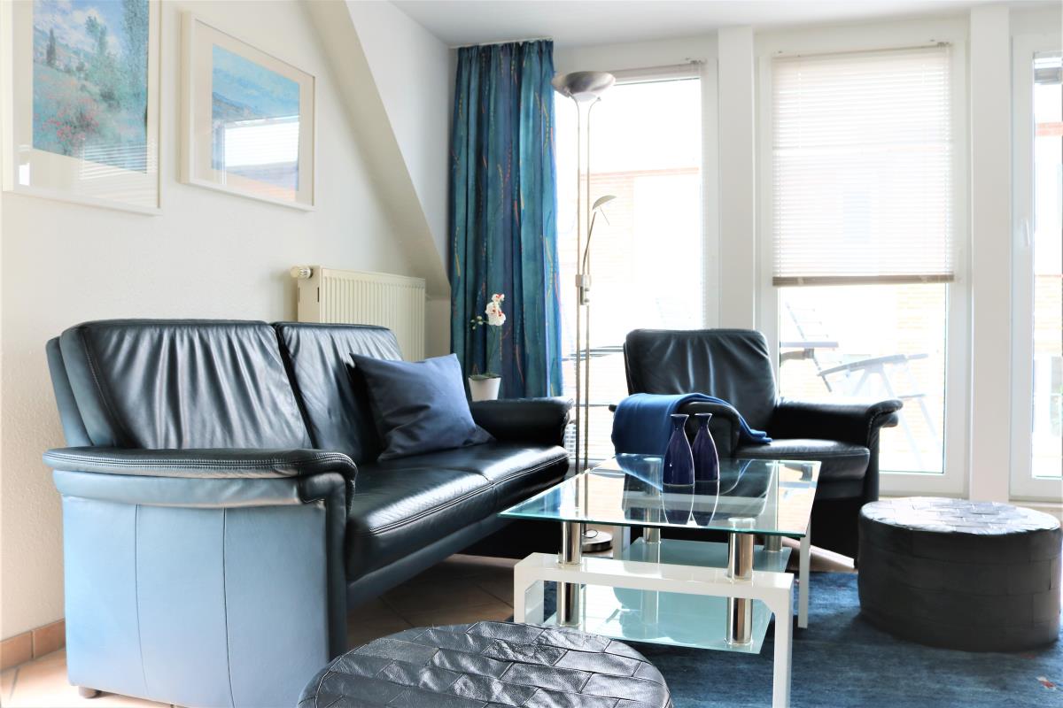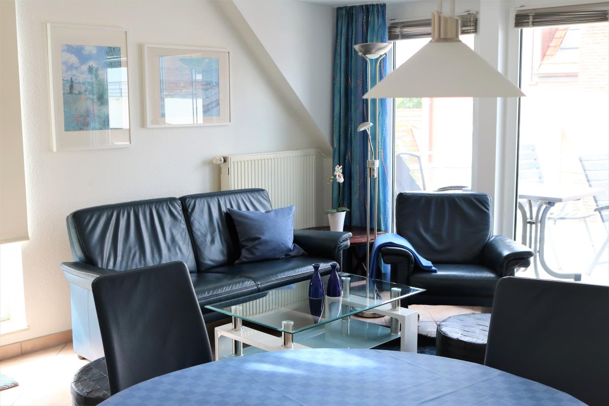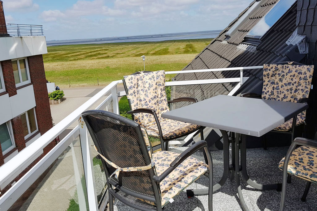 Die Wohnung hat ca. 80 m2 und 2 Balkone, 1 Südbalkon der zum Sonnenbaden einlädt und 1 west/nord Balkon von dem Sie volle Sicht auf die Insel Neuwerk und das Wattenmeer haben. Die Wohnung ist mit 2-5 Personen belegbar. Ausgestattet ist die Wohnung mit 2 separaten Schlafzimmern, eins davon mit 2 Einzelbetten und Fernseher, im anderen Schlafzimmer steht ein Doppelbett. Zusätzlich ist noch eine Einzelschlafcouch vorhanden. Kinderzustellbett möglich. Der geschmackvoll eingerichtete Wohnraum hat eine gemütliche Sitzecke, Kabelfernseher und einen runden Esstisch mit Stühlen. Die Küche hat einen Geschirrspüler, Backofen und ist mit allen notwendigen Küchengeräten ausgestattet. Bad mit Dusche/WC. Im Haus gibt es gegen Gebühr Wachmaschine und Trockner.Fahrstul im Haus vorhanden. Zur Wohnung gehört ein PKW Stellplatz und beim Haus gibt es einen Fahrradschuppen. Die angegebenen Preise gelten pro Ferienwohnung und Übernachtung. Wäschepaket zubuchbar. Mindestaufenthaltsdauer in der Hauptsaison 7 Übernachtungen, in der Nebensaison auf Anfrage.