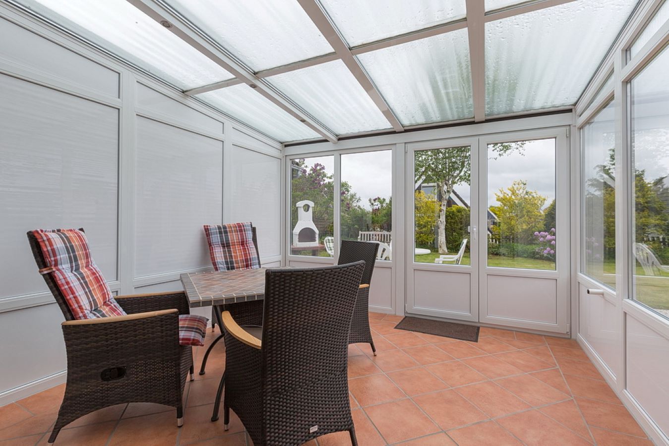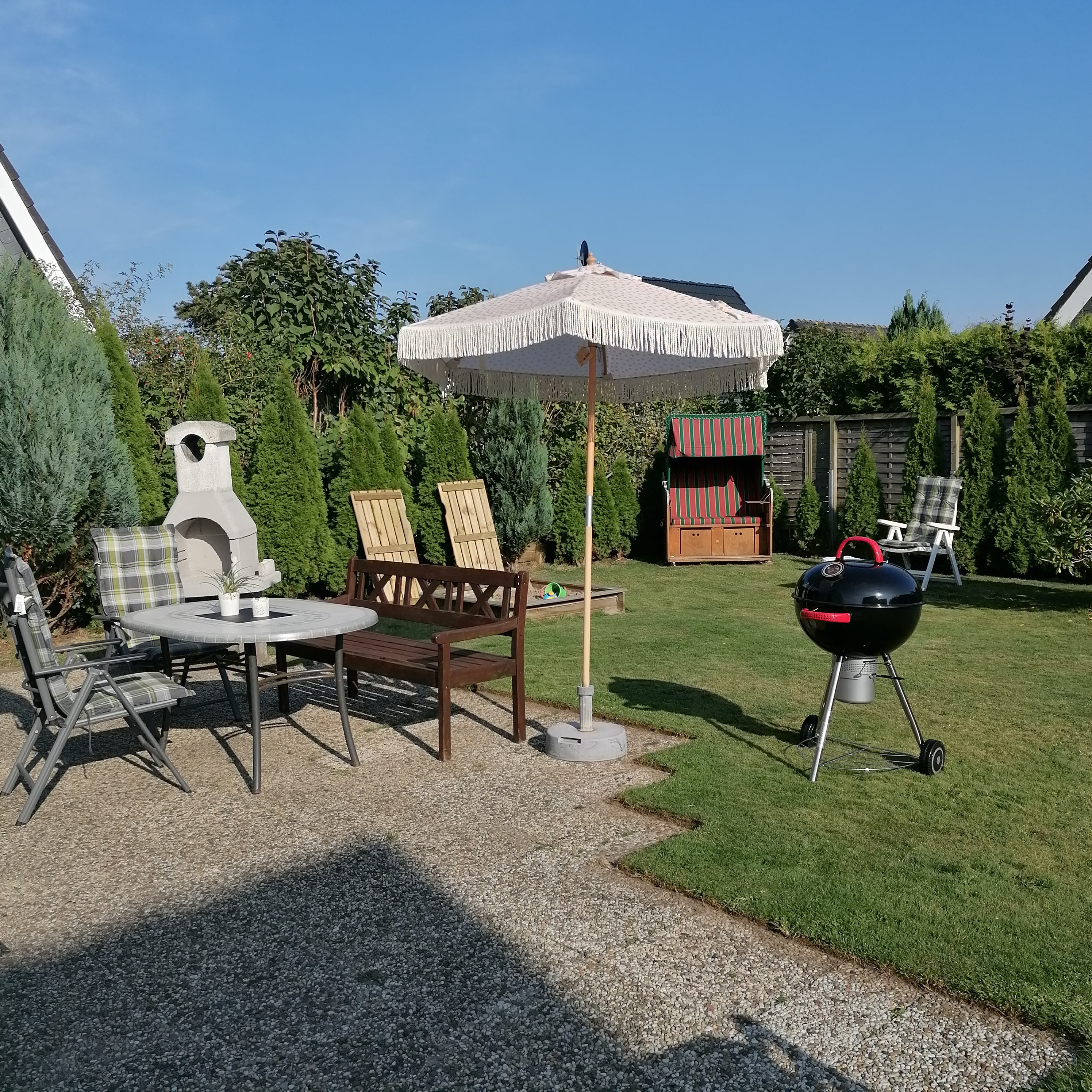 Das ca. 65 qm große und gemütliche Haus ist mit bis zu 4 Personen belegbar, ideal für den Familienurlaub. Es liegt an einer ruhigen Stichstrasse in einem Feriengebiet, zum Strand sind es ca. 5 bis 10 Minuten. Das Haus hat 2 Schlafzimmer (eins mit Doppelbett, eins mit Einzelbetten 200x90cm), Wohnzimmer mit bequemer Couch, TV, Stereoradio mit DVD Player und Essecke sowie Bücher- und Spieleschrank. WLan ist im Haus selbstverständlich vorhanden. Separate, komplett ausgestattete Küche mit Geschirrspüler, Ceranfeld sowie Kühlschrank mit Gefrierfach und Heißluftfriteuse. Das Objekt verfügt weiter über eine Terrasse mit Grillkamin und Strandkorb, sowie einer Sandkiste für die Kinder, einen großen Wintergarten, ein abgeschlossenes Grundstück und ein Gartenhäuschen, in dem Sie z.B. Ihre Fahrräder unterstellen können. Dusche/WC, PKW-Stellplatz. Hunde nicht erlaubt. Die angegebenen Preise gelten pro Ferienwohnung und Übernachtung. Wäschepaket, Kinderbett oder auch Kinderstuhl sind zubuchbar. Mindestaufenthaltsdauer in der Hauptsaison 4 Übernachtungen, in der Nebensaison auf Anfrage.