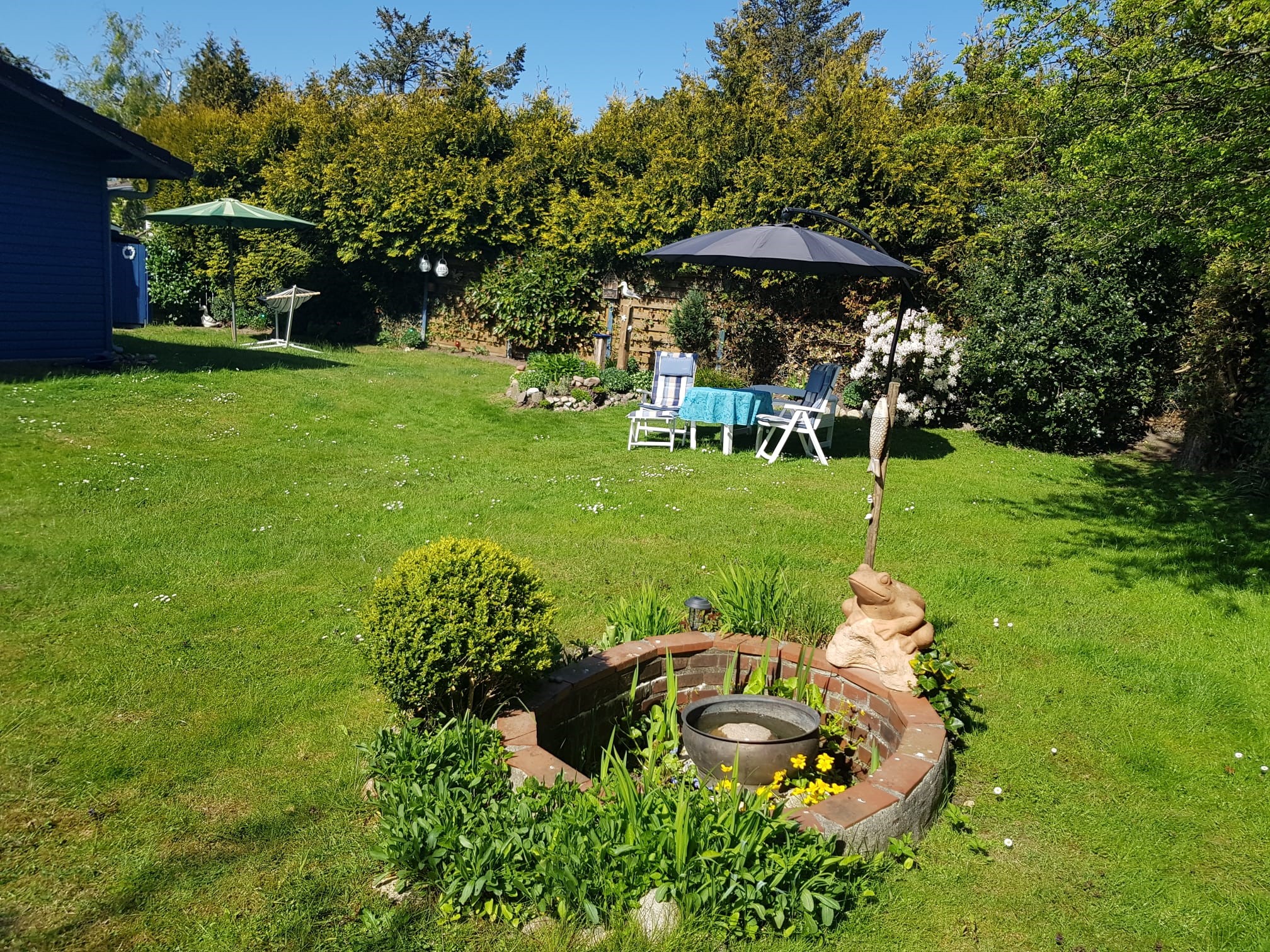 Ferienhaus mit großem Garten – Satelsrönne 02 in Cuxhaven-Duhnen Dieses idyllisch gelegene und liebevoll eingerichtete Ferienhaus "Satelsrönne 02" in Cuxhaven-Duhnen bietet auf ca. 55 m² Wohnfläche den idealen Rückzugsort für einen entspannten Familienurlaub an der Nordseeküste. Das Haus steht auf einem 560 m² großen, uneinsehbaren Grundstück mit gepflegtem Garten und ist perfekt für erholsame Tage im Grünen – ganz gleich, ob zum Sonnenbaden, Spielen oder gemütlichen Grillabenden. Die moderne Küche wurde 2021 vollständig erneuert und ist mit Ceranfeld, Backofen, Kaffeemaschine, Wasserkocher und Mikrowelle ausgestattet – ideal zur Selbstverpflegung. Im Schlafzimmer finden Sie zwei Einzelbetten, während im Esszimmer eine komfortable Schlafcouch Platz für zusätzliche Gäste bietet. Der gemütliche Wohnbereich mit großer Eckcouch, Flachbild-TV und einem Holzofen schafft eine behagliche Atmosphäre – auch an kühleren Tagen. Das Highlight ist der großzügige, eingezäunte Garten mit zwei möblierten Terrassen und einer Hängematte, die zum Verweilen und Entspannen einlädt. Hier lässt sich die warme Jahreszeit in vollen Zügen genießen – ob mit Familie oder Freunden. In der ruhigen Seitenstraße Satelsrönne profitieren Sie dennoch von einer zentralen Lage: Restaurants, Kneipen, Einkaufsmöglichkeiten, ein Fahrradverleih und das Thalassozentrum „Ahoi“ sind bequem zu Fuß erreichbar. In der Saison kommt sogar täglich ein Bäckerwagen direkt in die Straße – frische Brötchen am Morgen sind also garantiert. Ein PKW-Stellplatz befindet sich direkt am Haus, Strom und Heizung sind im Preis inbegriffen. Ein Wäschepaket kann bei Bedarf hinzugebucht werden.